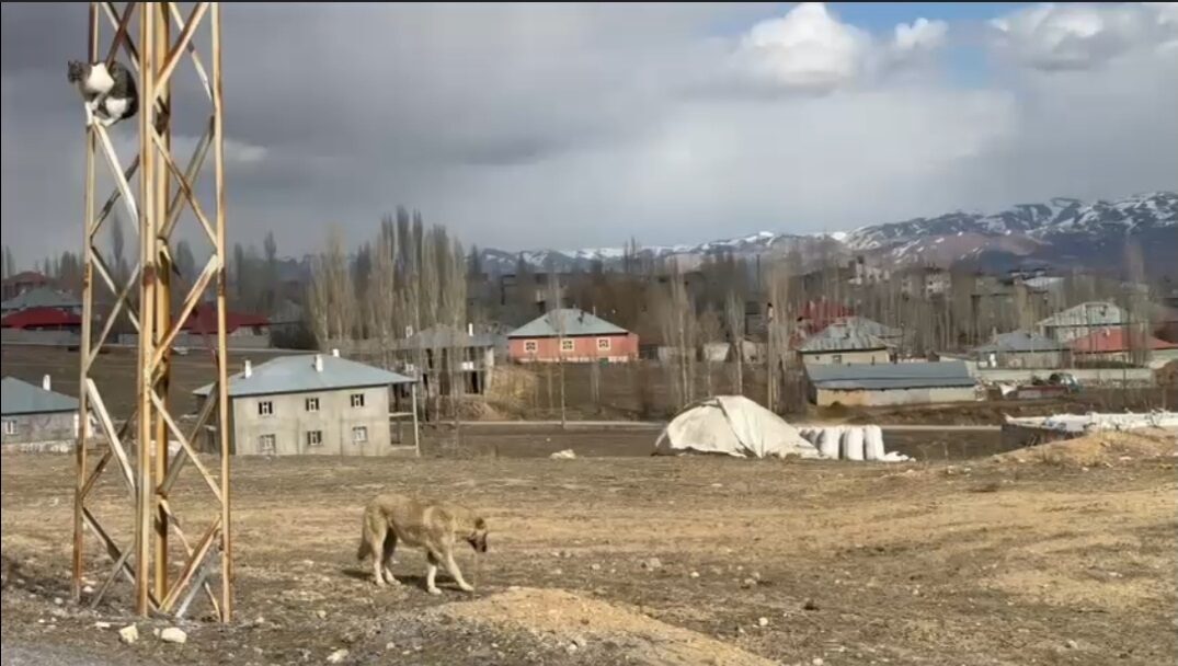 Başkale ilçesi Tepebaşı Mahallesi’nde köpek kaçan kedi, elektrik direğine tırmandı. Köpek direğin etrafında dolanırken, durumu fark edenler kedinin yardıma koştu. Köpek bölgeden uzaklaştırılırken, kedi ile köpeğin o anları cep telefonu kamerasına yansıdı.