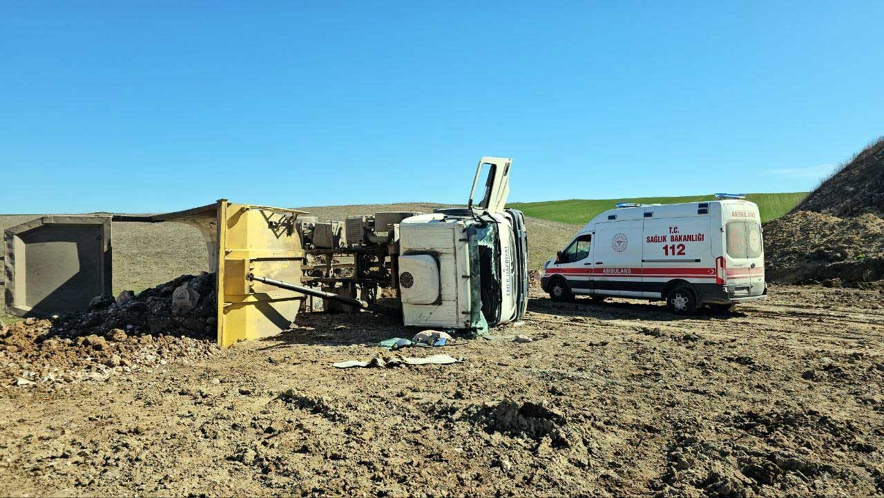 Kamyon, hafriyat boşaltırken devrildi; sürücü yaralı