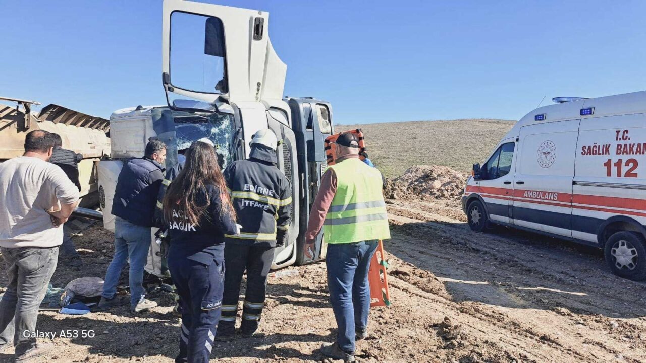 Umut IŞIK/EDİRNE, -EDİRNE’de yük boşaltırken devrilen hafriyat kamyonunun şoförü yaralandı.