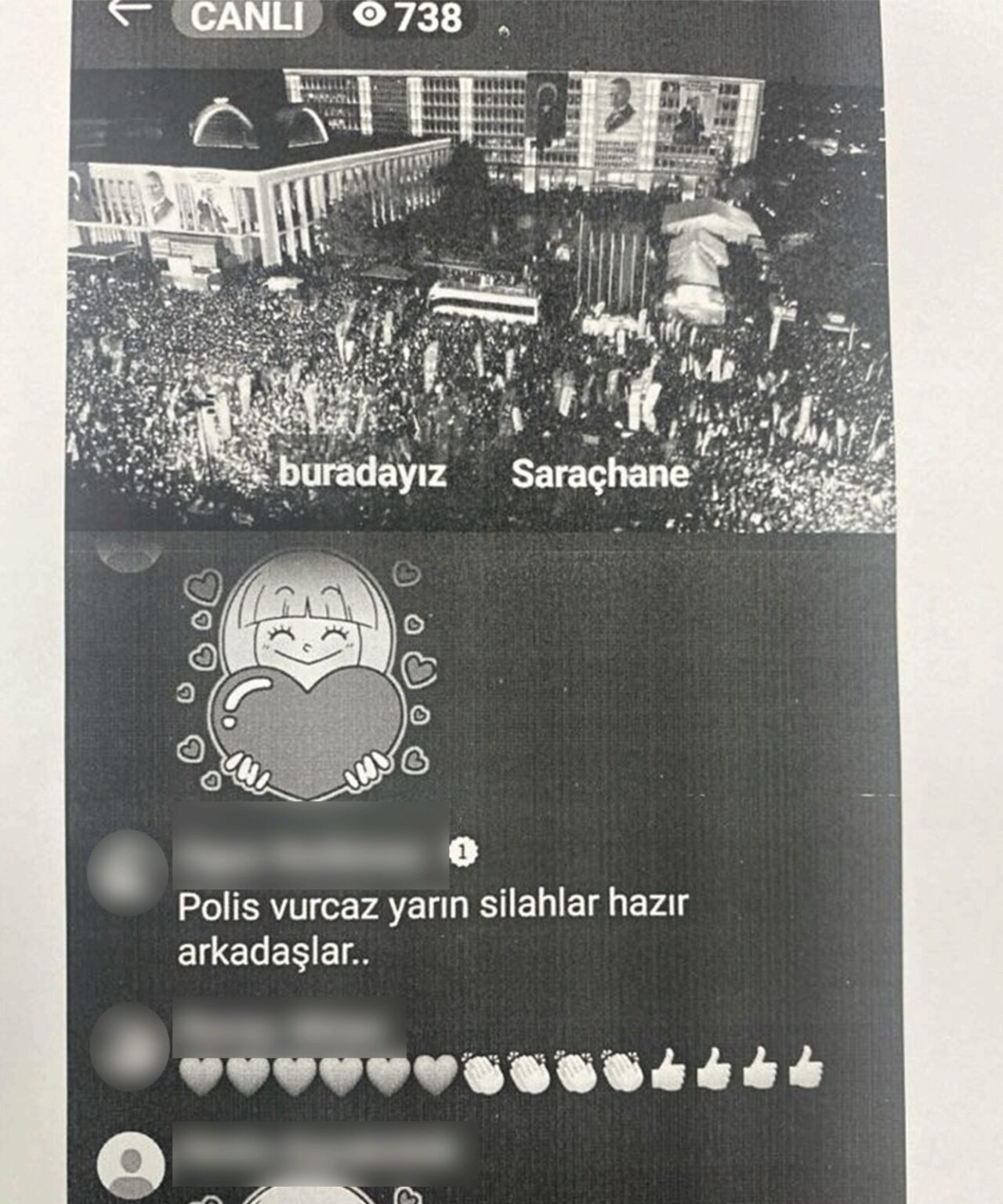 Kayseri’de İl Emniyet Müdürlüğü Siber Suçlarla Mücadele Şube Müdürlüğü ekipleri, sosyal medya üzerinden ‘Halkı kin ve düşmanlığa tahrik’ ve ‘Suç işlemeye tahrik’ suçları kapsamında provokatif paylaşımlar yapan kişilerin yakalanmasına yönelik çalışma kapsamında, canlı yayına, ‘Polis vuracağız, yarın silahlar hazır arkadaşlar’ yorumunu yapan O.K. (43) ile birlikte çeşitli paylaşımlarda bulunan toplam 10 kişiyi gözaltına aldı. Gözaltına alınan şüpheliler hakkında ‘Halkı kin ve düşmanlığa tahrik’ suçlarından işlem başlatıldı.