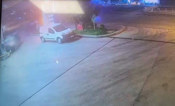 Kaza anı akaryakıt istasyonunun güvenlik kamerası tarafından kaydedildi. Görüntüde cadde üzerinde ilerleyen otomobil ile kavşaktan caddeye bağlanan diğer otomobilin çarpıştığı görülüyor. Görüntünün devamında; savrulan otomobilin yol kenarındaki akaryakıt istasyonu pompasına çarptığı anlar yer aldı.