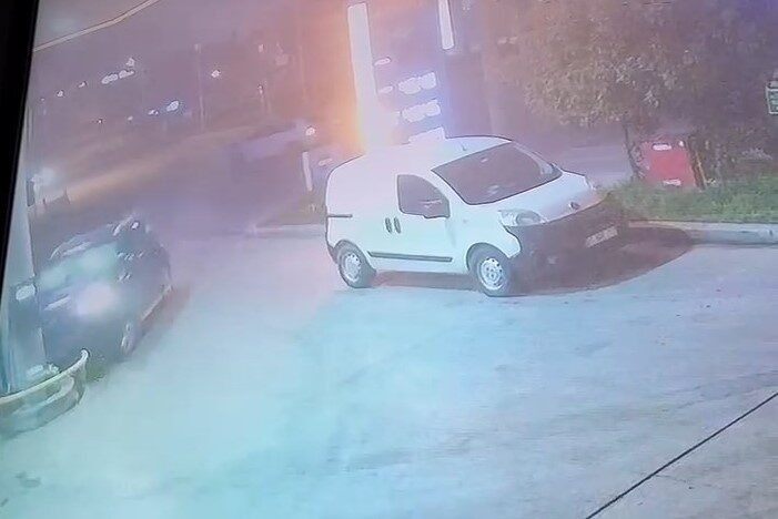 Kaza anı akaryakıt istasyonunun güvenlik kamerası tarafından kaydedildi. Görüntüde cadde üzerinde ilerleyen otomobil ile kavşaktan caddeye bağlanan diğer otomobilin çarpıştığı görülüyor. Görüntünün devamında; savrulan otomobilin yol kenarındaki akaryakıt istasyonu pompasına çarptığı anlar yer aldı.