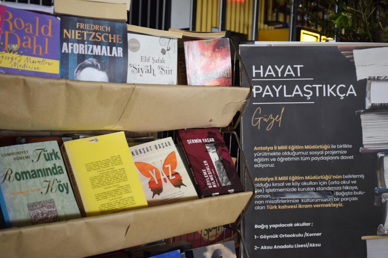 Antalya’da bir kafe işletmesi, kitap okuma alışkanlığını teşvik etmek amacıyla başlattığı ‘Kitap getirene kahve bizden’ kampanyasını sosyal sorumluluk projesine dönüştürdü. ‘Hayat Paylaştıkça Güzel’ sloganıyla hayata geçirilen projeye, İl Milli Eğitim Müdürlüğü de destek verdi. Kampanya kapsamında kütüphanelere bağışlanmak üzere kitap getirenlere Türk kahvesi ikram edilirken, projeye destek vermek isteyen özel bir okulun öğrencileri 13 koli kitap ile katılım sağladı.