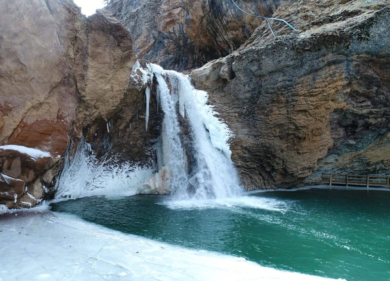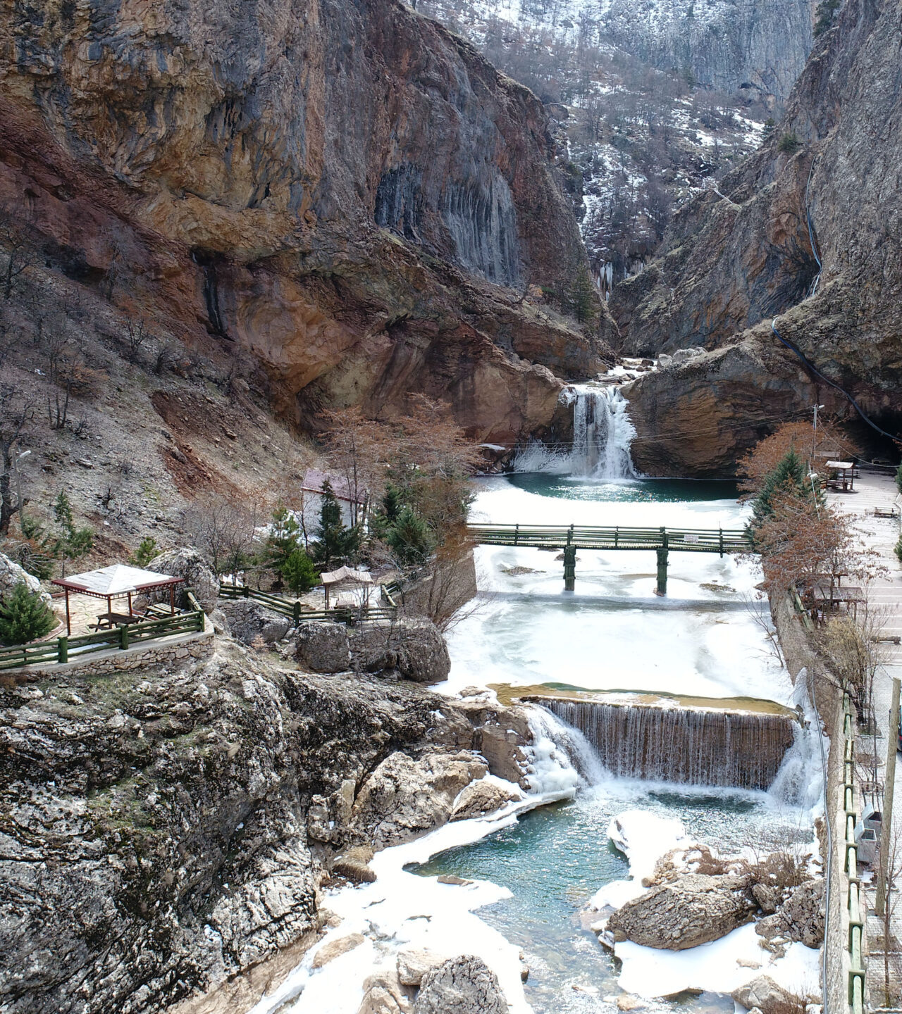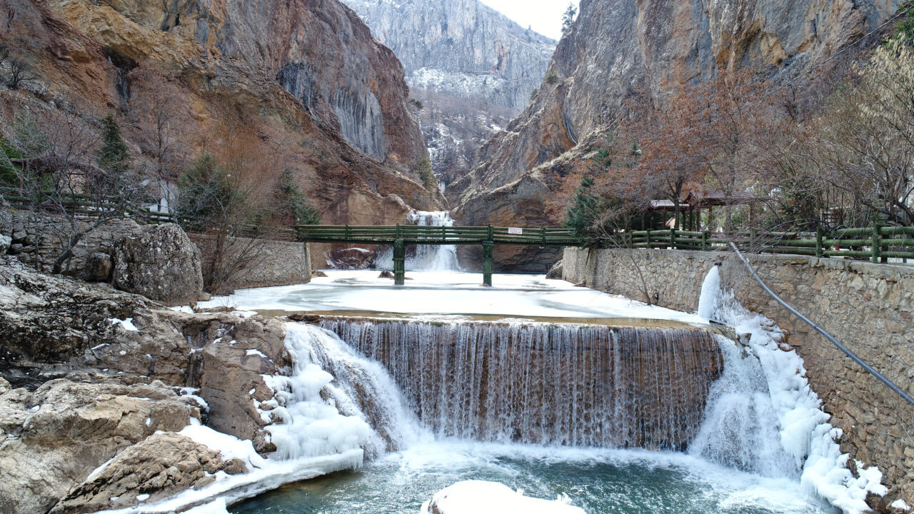 Salih BÜYÜKSAMANCI/KONYA, – KONYA’nın Taşkent ilçesindeki Çetmi Şelalesi, hava sıcaklıkları eksi 18 dereceye kadar düşünce buz tuttu.