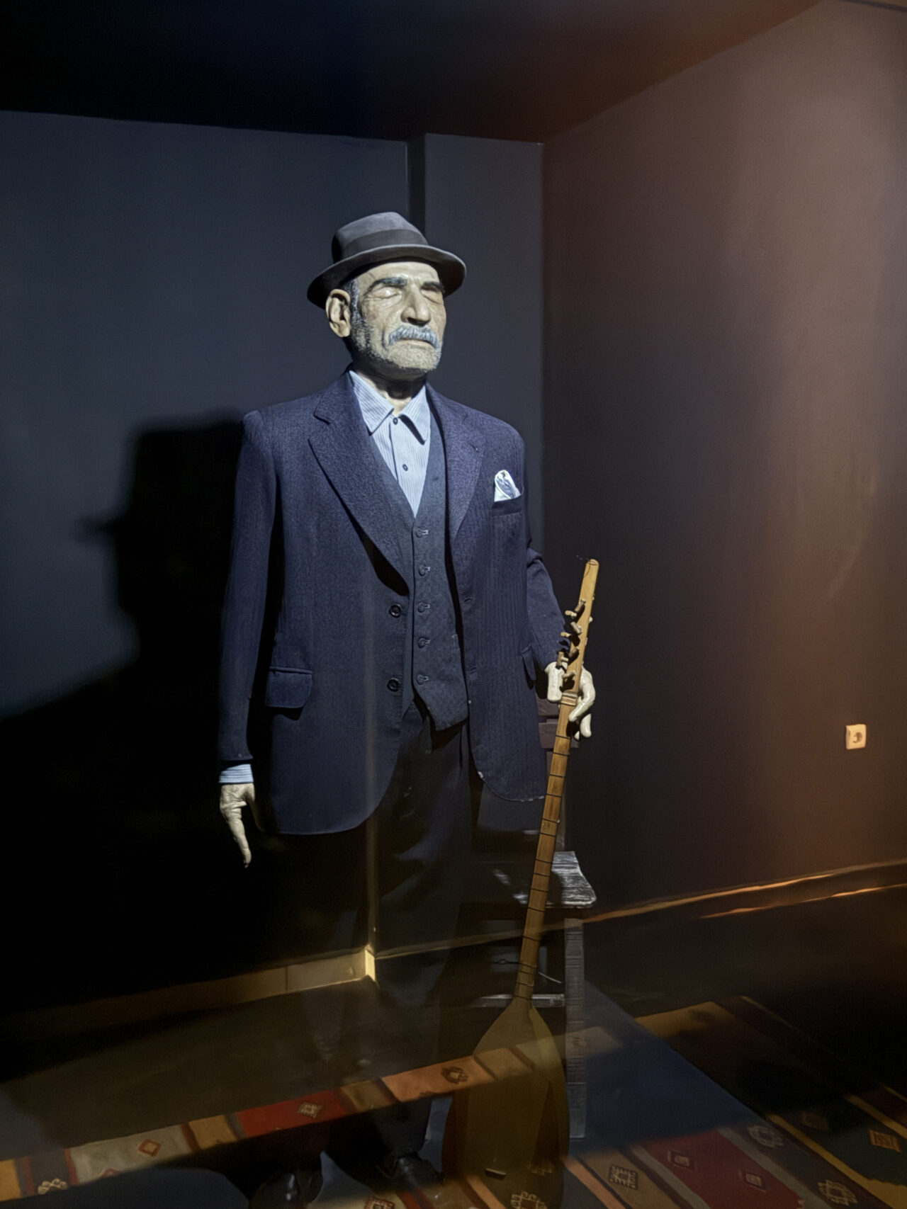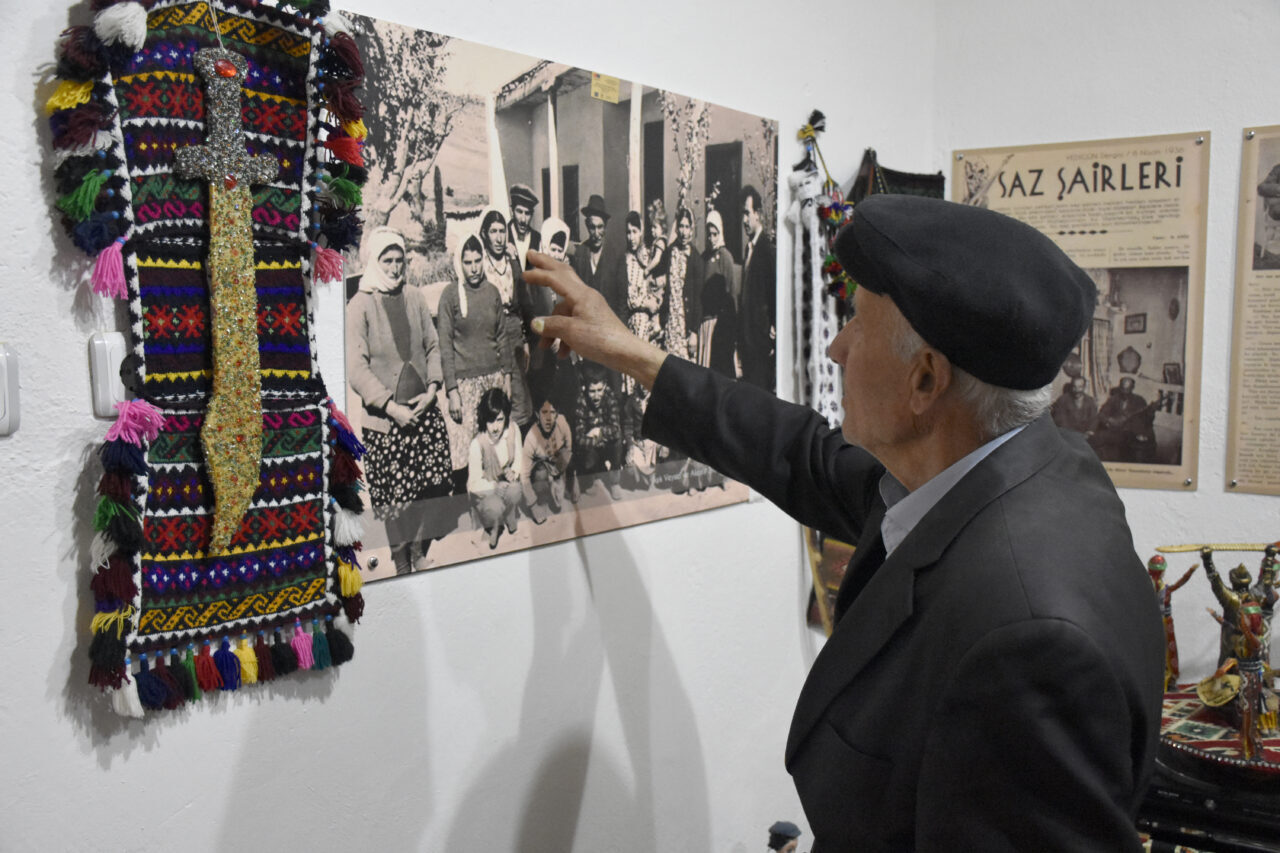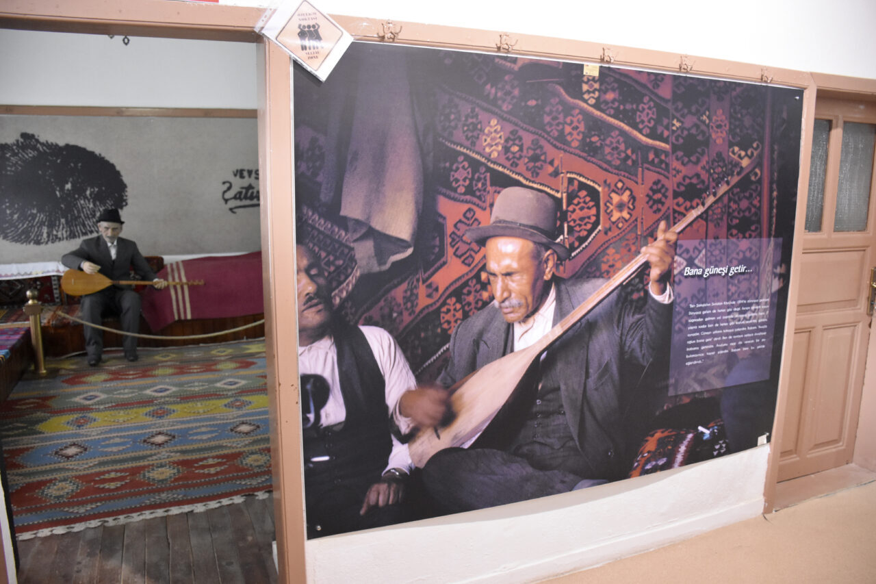 Halk Ozanı Aşık Veysel Şatıroğlu’nun müzede sergilenen ve yurt gezilerinde, konserlerde kullandığı sazının gövde ön yüzünde bulunan kalp şekli de dikkat çekiyor. Cam bölme içinde muhafaza edilen ozanın sazının yanında ise ona yazdığı, “Ben gidersem sazım sen kal dünyada/Gizli sırlarımı aşikar etme/ Lal olsun dillerin söyleme ya da/Garip bülbül gibi ahuzar etme” dizeleri sıralanıyor.