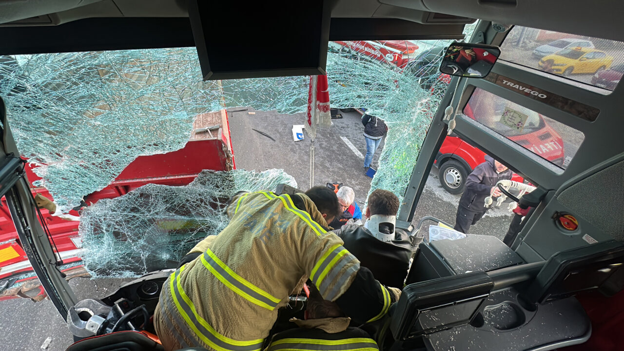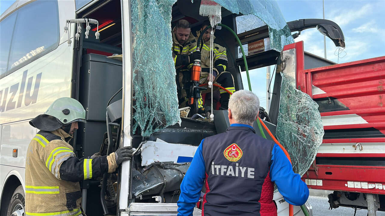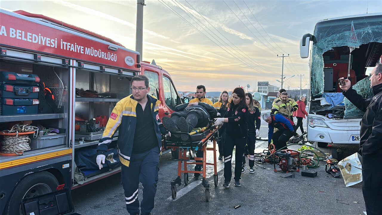 Oğuzhan KILIÇ/KÜTAHYA, – KÜTAHYA’da yolcu otobüsü, kırmızı ışıkta durmak için yavaşlayan TIR’a arkadan çarptı. Kazada 13 kişi yaralandı.