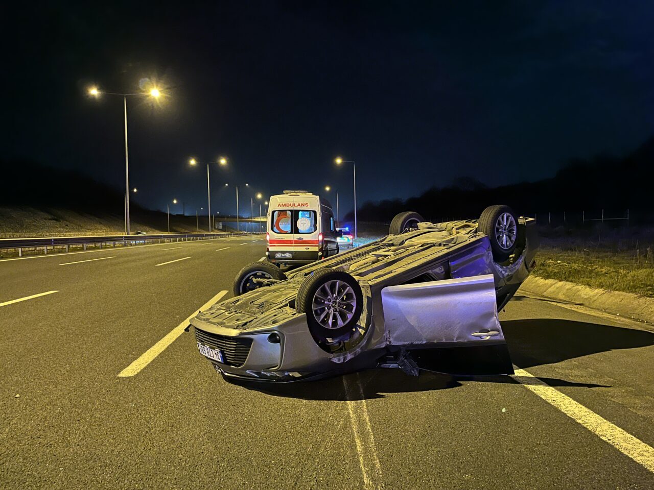 Ardacan Uzun/ADAPAZARI (Sakarya), – KUZEY Marmara Otoyolu’nun Sakarya geçişinde çarpışan iki otomobilden biri takla attı. Kazada 2’si çocuk 5 kişi yaralandı.