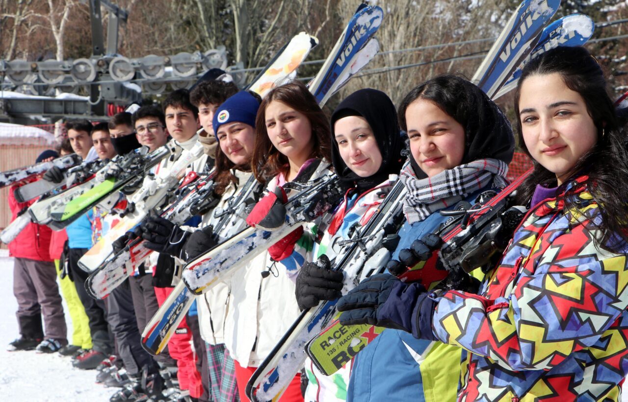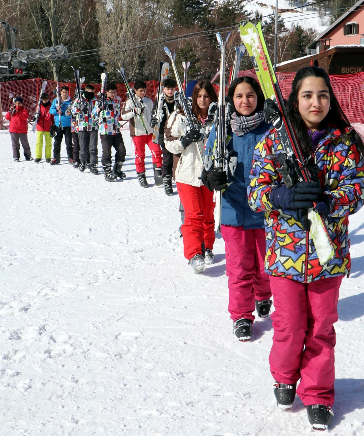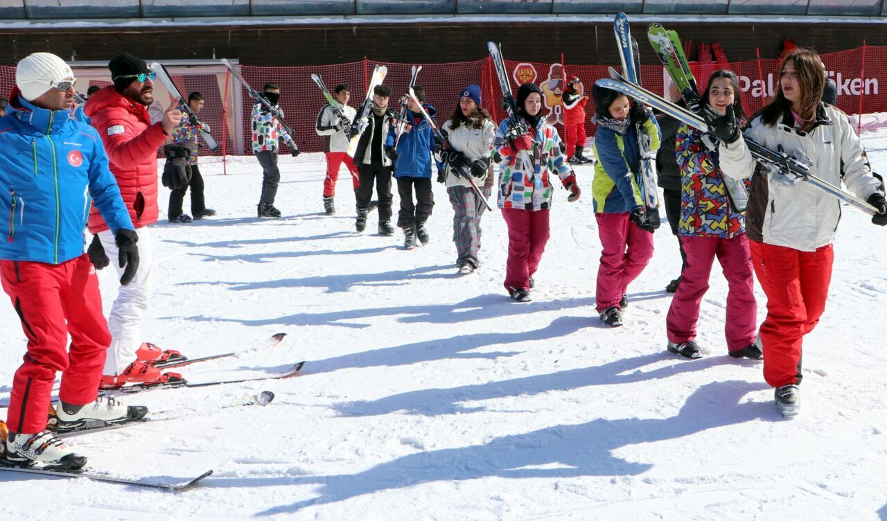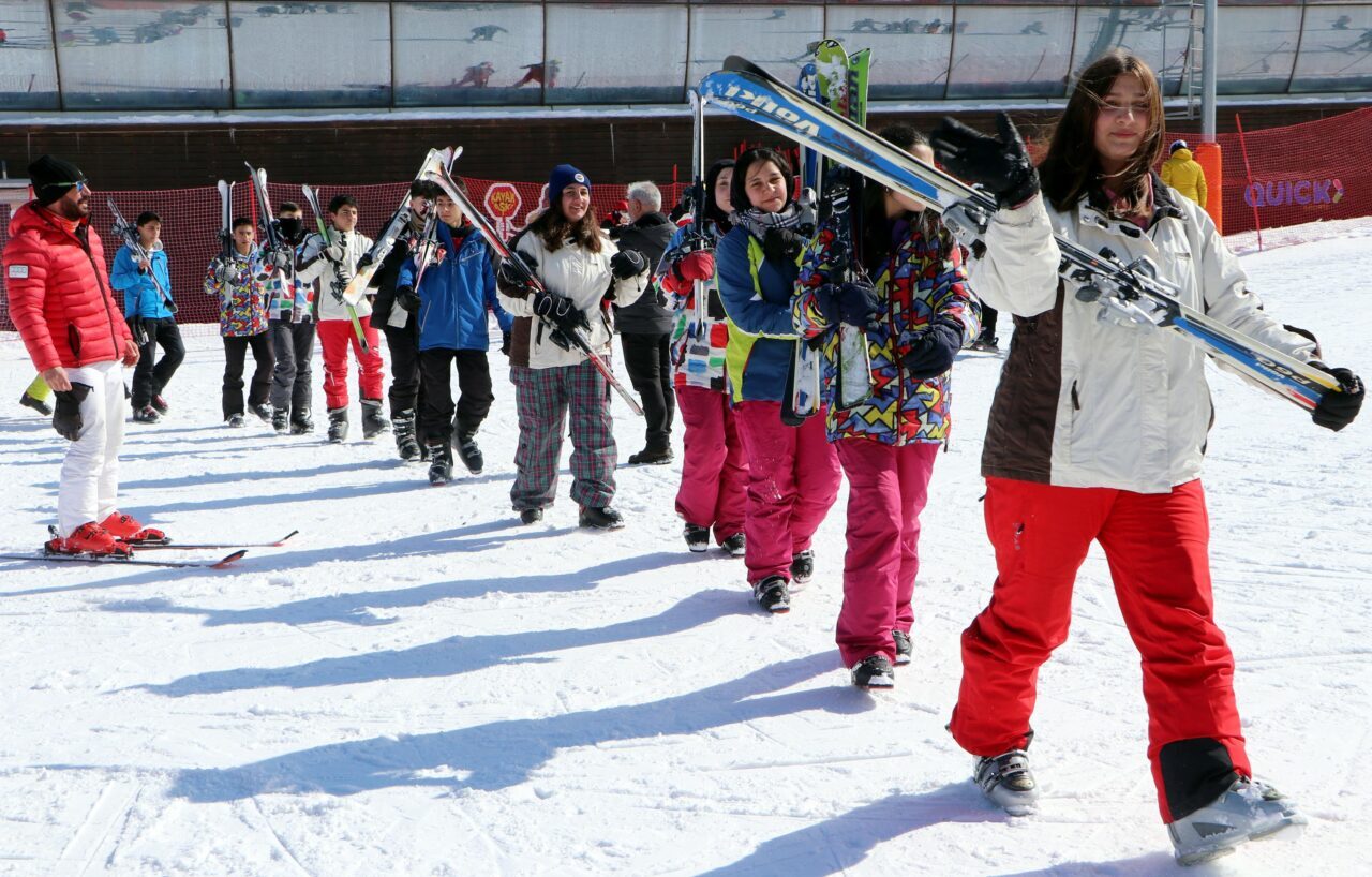 Turgay İPEK/ERZURUM, – ERZURUM’un Palandöken Kış Sporları Merkezi’nde, Yakutiye Kaymakamlığı’nın 2011 yılında başlattığı ‘Haydi Liseliler Kayağa’ projesi kapsamında, ilçedeki tüm lise öğrencilerine kayak dersi veriliyor.