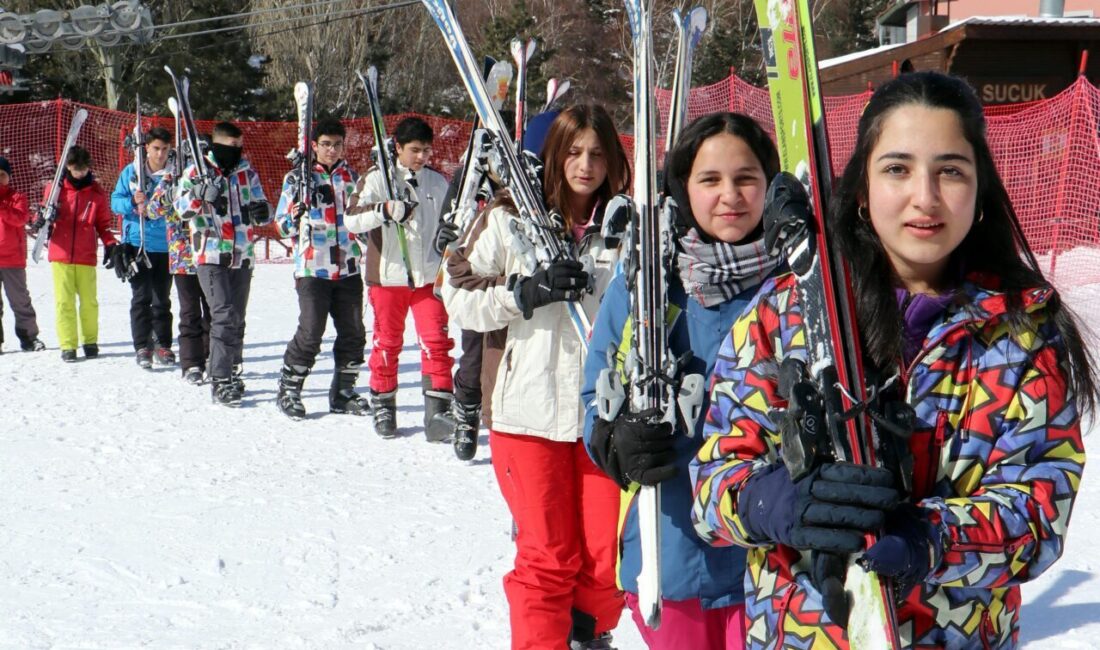 Turgay İPEK/ERZURUM, – ERZURUM’un Palandöken Kış Sporları Merkezi’nde, Yakutiye Kaymakamlığı’nın 2011 yılında başlattığı ‘Haydi Liseliler Kayağa’ projesi kapsamında, ilçedeki tüm lise öğrencilerine kayak dersi veriliyor.