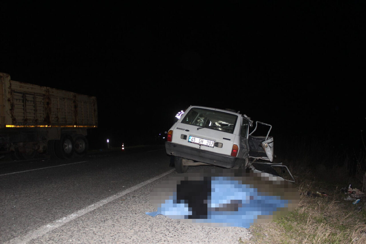 Kaza, saat 23.30 sıralarında Salihli-Köprübaşı Karayolu Taytan Mahallesi Bezirganlı mevkisinde meydana geldi. Salihli’den Köprübaşı istikametine giden Y.E. (72) yönetimindeki 45 SH 207 plakalı otomobil, arıza nedeniyle yolun sağında park halinde bulunan ve sürücüsü belirlenemeyen 35 T 1262 plakalı kamyona arkadan çarptı. Çevredeki diğer sürücülerin ihbarı üzerine olay yerine sağlık, itfaiye ve jandarma ekipleri sevk edildi. Bölgeye gelen Manisa Büyükşehir İtfaiye Dairesi Başkanlığına bağlı ekipler, otomobilde sıkışan 3 kişiyi bulunduğu yerden çıkardı. Sağlık ekiplerinin yaptığı kontrolde otomobildeki yolculardan Menekşe Ertuğrul’un (70) hayatını kaybettiği, sürücü Y.E. ile D.S. (45) ve H.Ş.S.’nin (6) yaralandığı belirlendi. Yapılan ilk müdahalenin ardından Salihli Devlet Hastanesi ile özel hastanelere kaldırılan yaralılardan sürücü Y.E. ile H.Ş.S.’nin hayati tehlikesinin bulunduğu öğrenildi. Kazada olay yerinde hayatını kaybeden Menekşe Ertuğrul cenazesi Salihli Devlet Hastanesine kaldırıldı.