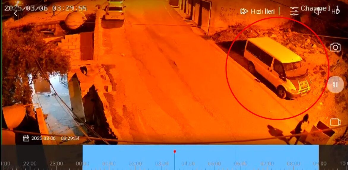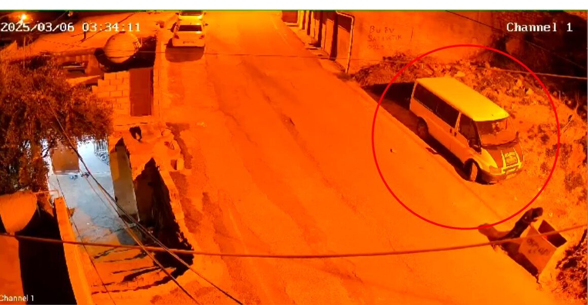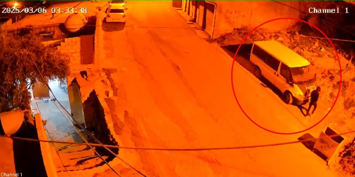 Seyfettin EKEN-Emrullah KARAKAŞ/DERİK (Mardin), – MARDİN’in Derik ilçesinde 2 şüphelinin, park halindeki minibüsü iterek çalmaya kalkıştığı anlar, güvenlik kamerasına yansıdı.