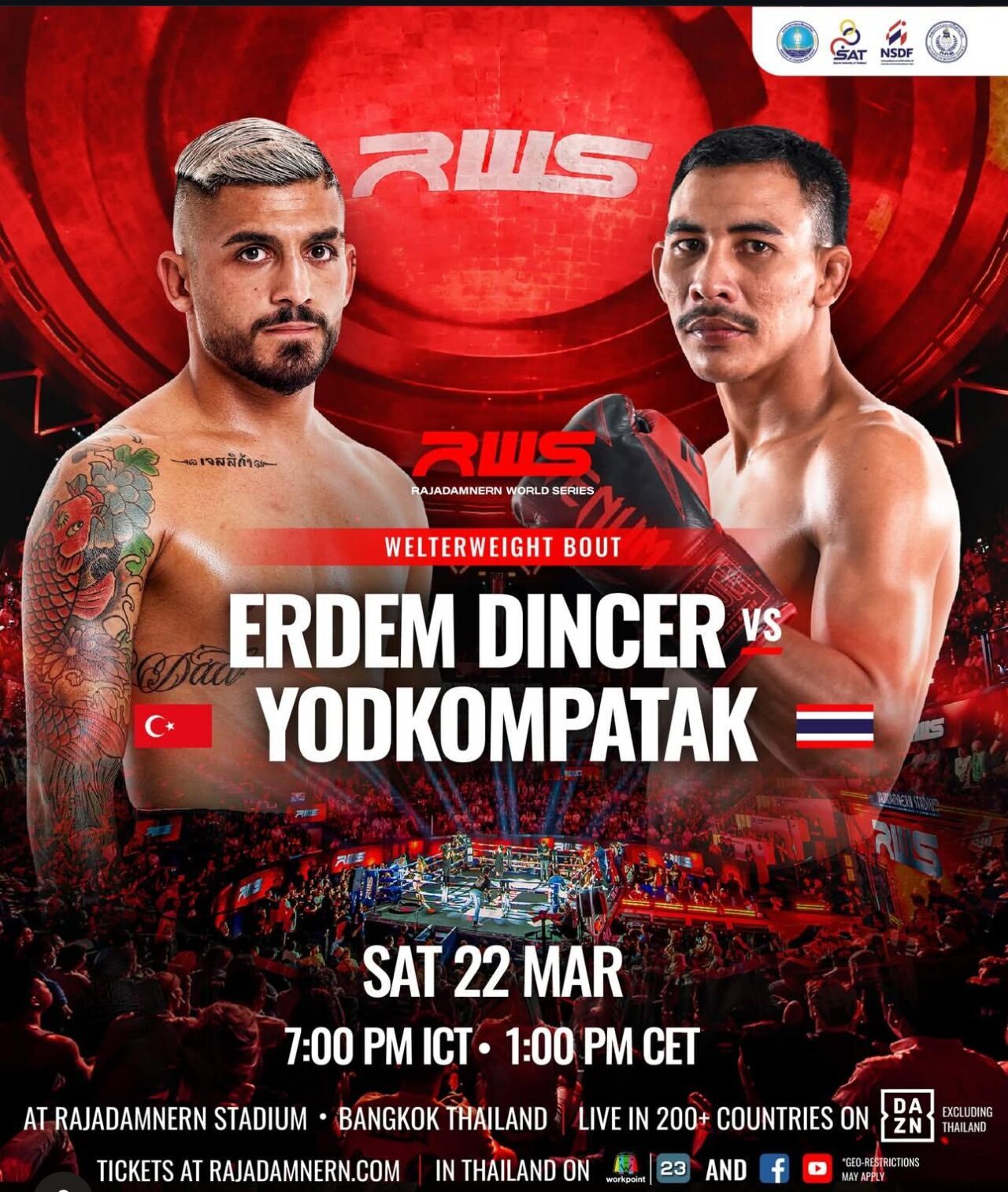 Erdem Taha Dinçer, Tayland’daki başarısının ardından kariyerine devam ediyor ve 22 Mart Cumartesi günü, bir başka ünlü Taylandlı dövüşçüye karşı yine RWS’de ringe çıkacak. Bu maç, Dinçer için büyük bir anlam taşıyor ve dövüşseverler, bu tarihi karşılaşmayı heyecanla bekliyor.