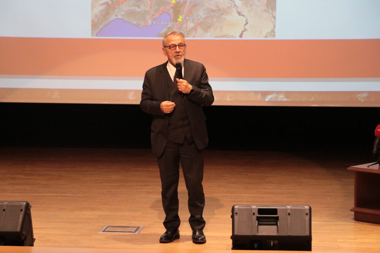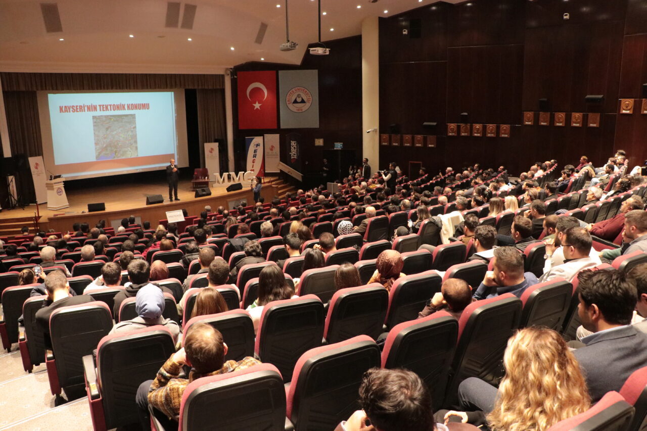Erciyes üniversitesi (ERÜ) Sabancı Kültür Sitesi’nde düzenlenen konferansa ERÜ Rektörü Prof. Dr. Fatih Altun, Bilim Akademisi Kurucu Üyesi Prof. Dr. Naci Görür, Mimar ve Mühendisler Grubu (MMG) Kayseri Şube Başkanı Sayın Sefa Karademir, akademisyenler ve öğrenciler katıldı. Burada konuşan Prof. Dr. Naci Görür, “Kayseri, Orta Anadolu’nun en büyük fay sistemlerinden biri olan Ecemiş Fayı üzerinde, o fayın tam kucağında oturuyor. Bu fay eninde sonunda bir deprem üretecek. Boyu, özelliği itibariyle 7’nin üzerinde bir deprem üretir. Kayseri, bir fay düzleminin üzerinde oturuyor. Demek ki Kayseri bir deprem kenti. Neyi öğrenmek istiyorsun? Kimi teselli etmeye çalışıyorsun. Kayseri bir fayın kucağında oturuyor. Ne zaman deprem olur, Allah bilir. Ne zaman fayın deprem üreteceğini, fayın tekerrür periyodu bilir. Fayın tekerrür periyodu da fayın etrafındaki blokların hareket hızı, tekerrürü belirler. Eğer fayda, kenarındaki levhalar riskli hareket ediyorsa, o fay hızlı bir şekilde enerji, stres biriktirir. Kısa sürede deprem oluşturur. Ama levha hareketleri yavaş hareket ediyorsa uzun dönemde stres biriktirir. Uzun zaman sonra deprem olur” ifadelerini kullandı.
