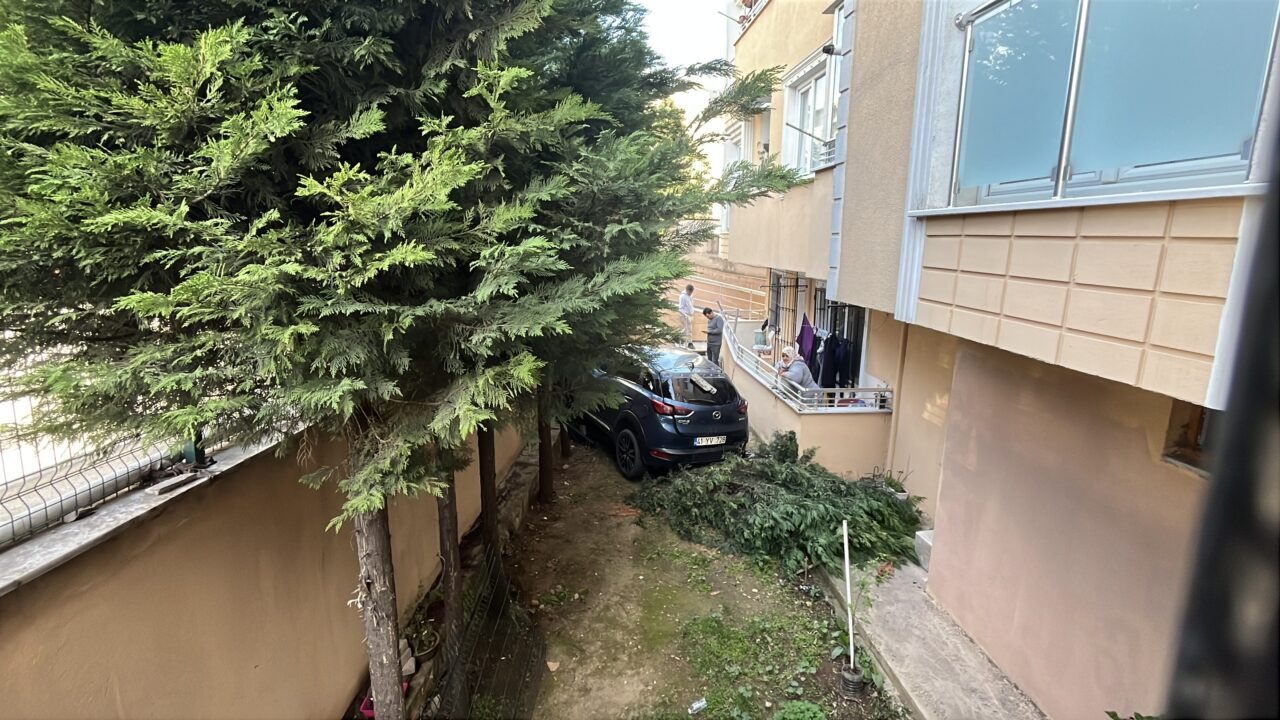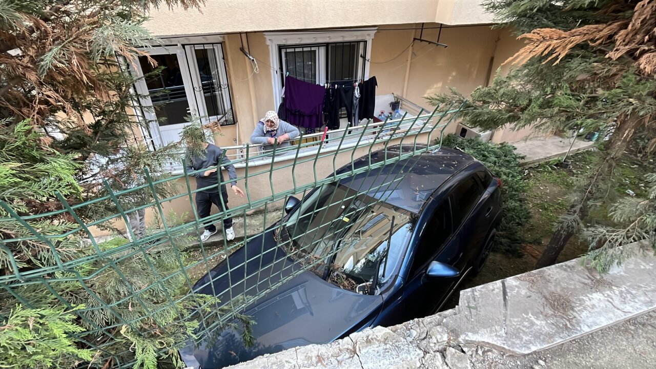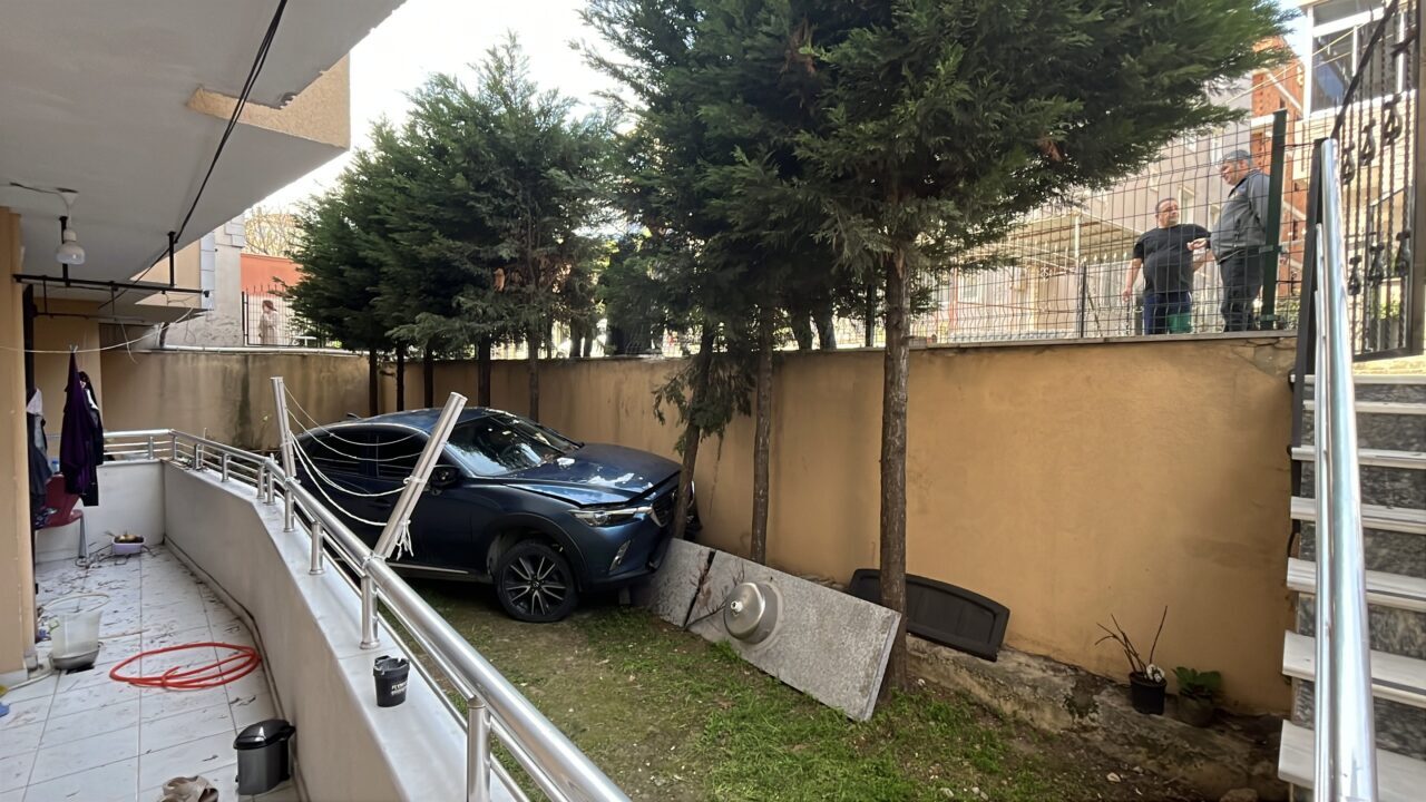Erol POLAT/GEBZE(Kocaeli), -KOCAELİ’nin Gebze ilçesinde otomobilin 3 metre yüksekliğindeki duvarı aşıp, binanın bahçesine düştüğü kazada 1 kişi yaralandı.