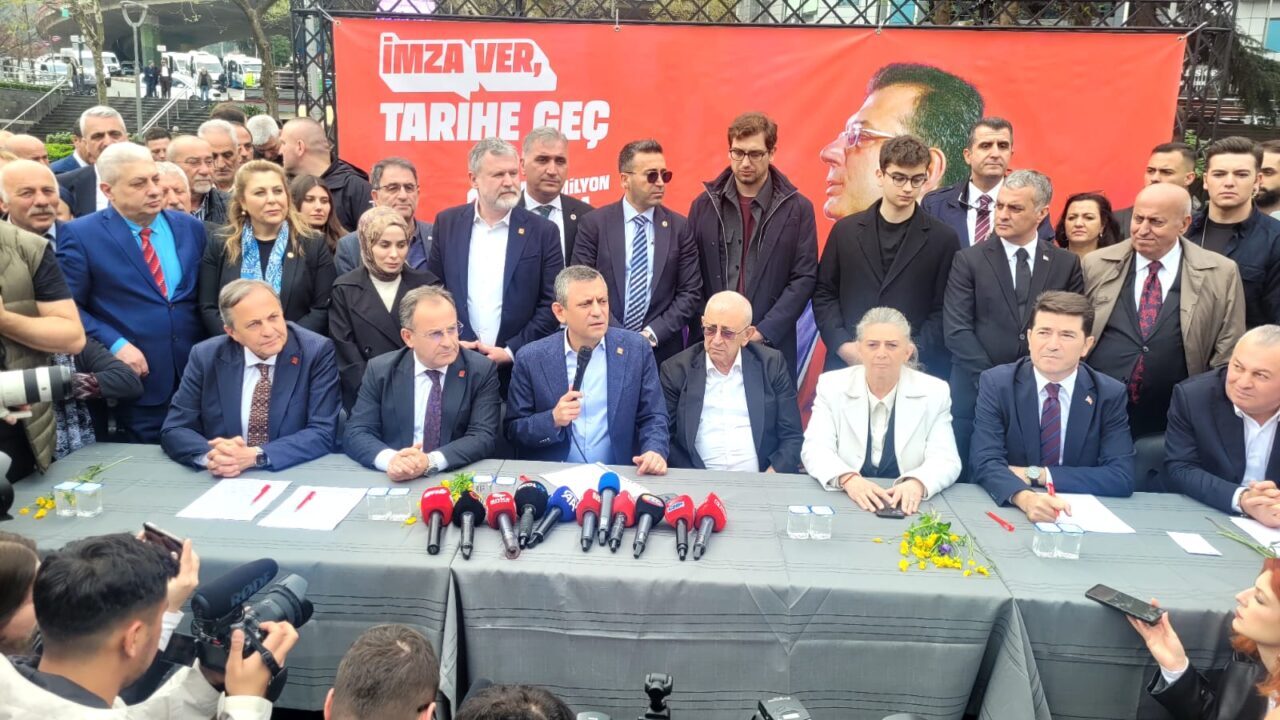 CHP Genel Başkanı Özgür Özel, Silivri Cezaevi’nde tutuklu bulunan ve İstanbul Büyükşehir Belediye (İBB) Başkanlığı görevinden uzaklaştırılan Ekrem İmamoğlu’nun Trabzon’daki aile kabristanlığını ziyaret edip, dua etti. Özel, İmamoğlu’nun serbest bırakılması ve erken seçim sandığının kurulması için başlattıkları imza kampanyası kapsamında Atatürk Alanı’na da gelerek açıklamalarda bulundu. İmamoğlu’nun hukuksuz süreçle cezaevine gönderildiğini belirten Özgür Özel, “Cumhurbaşkanlığı adaylığı seçimine 4 gün kala, 4 günlük gözaltı süresiyle milletin sandıklara gittiği gün tutuklanarak cezaevine kondu. Bu ülke 6 gün önce onun için ayağa kalktı. 15,5 milyon insan dayanışmasını göstermek için gitti. Resmi olmayan bir seçimde 13,5 milyonu üyesi olmadıkları bir partinin çağrısıyla sandığın başına geçti ve ona oy attı” dedi.