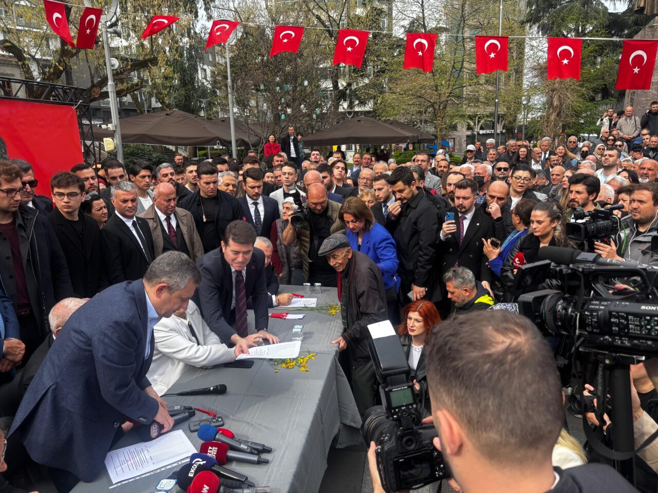KENT MEYDANINDA İMZA KAMPANYASINA KATILDI CHP Genel Başkanı Özgür Özel,