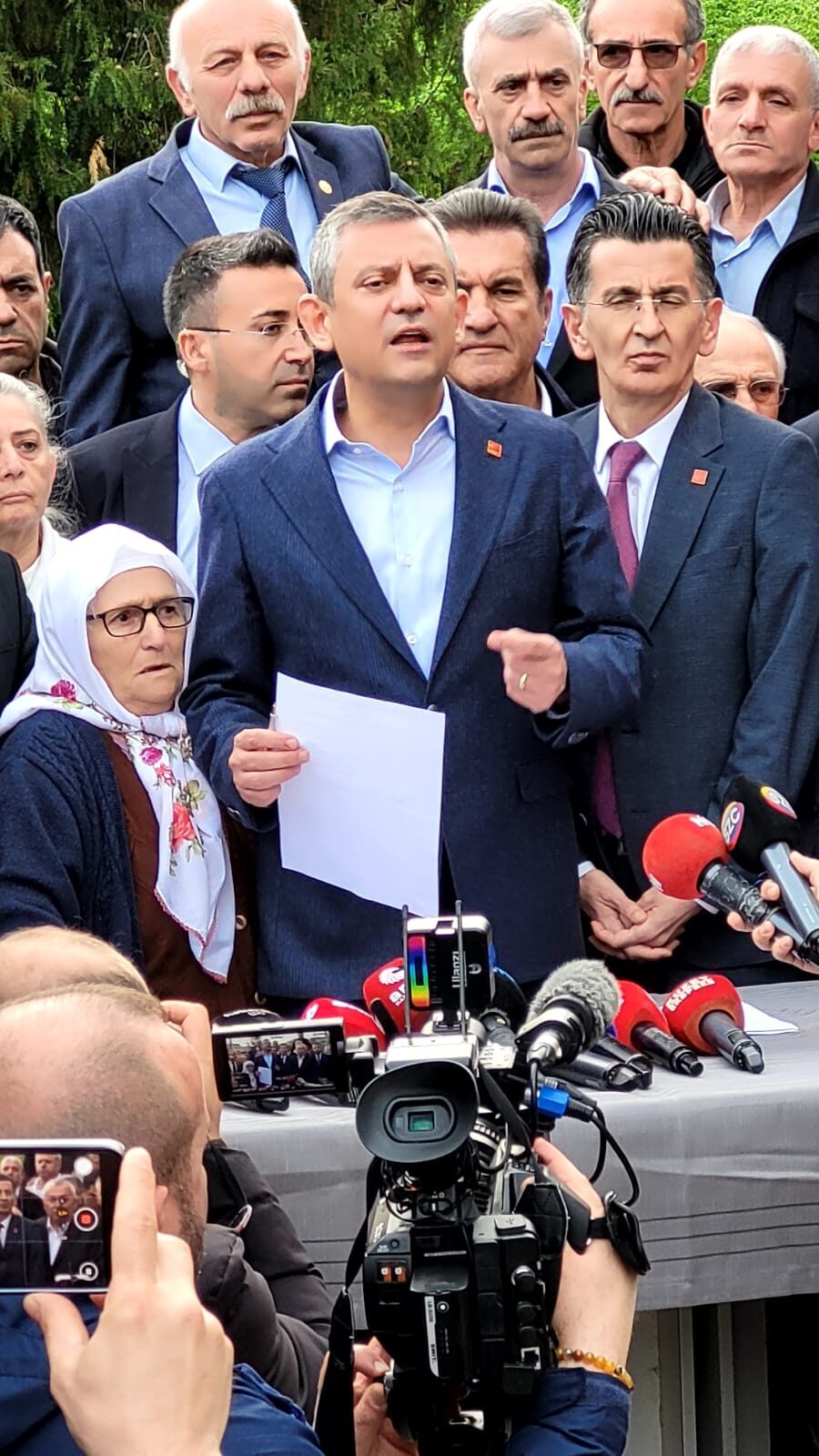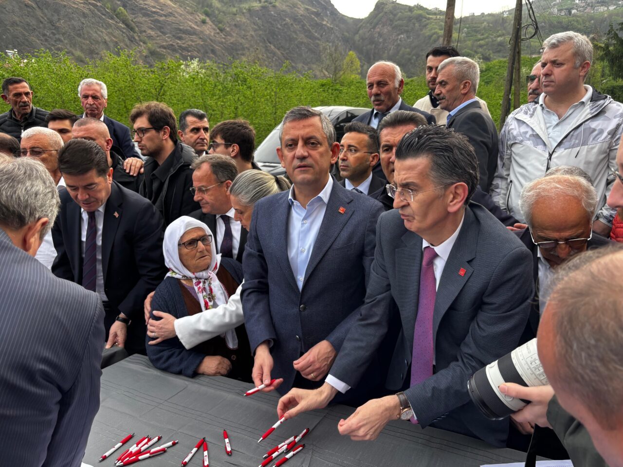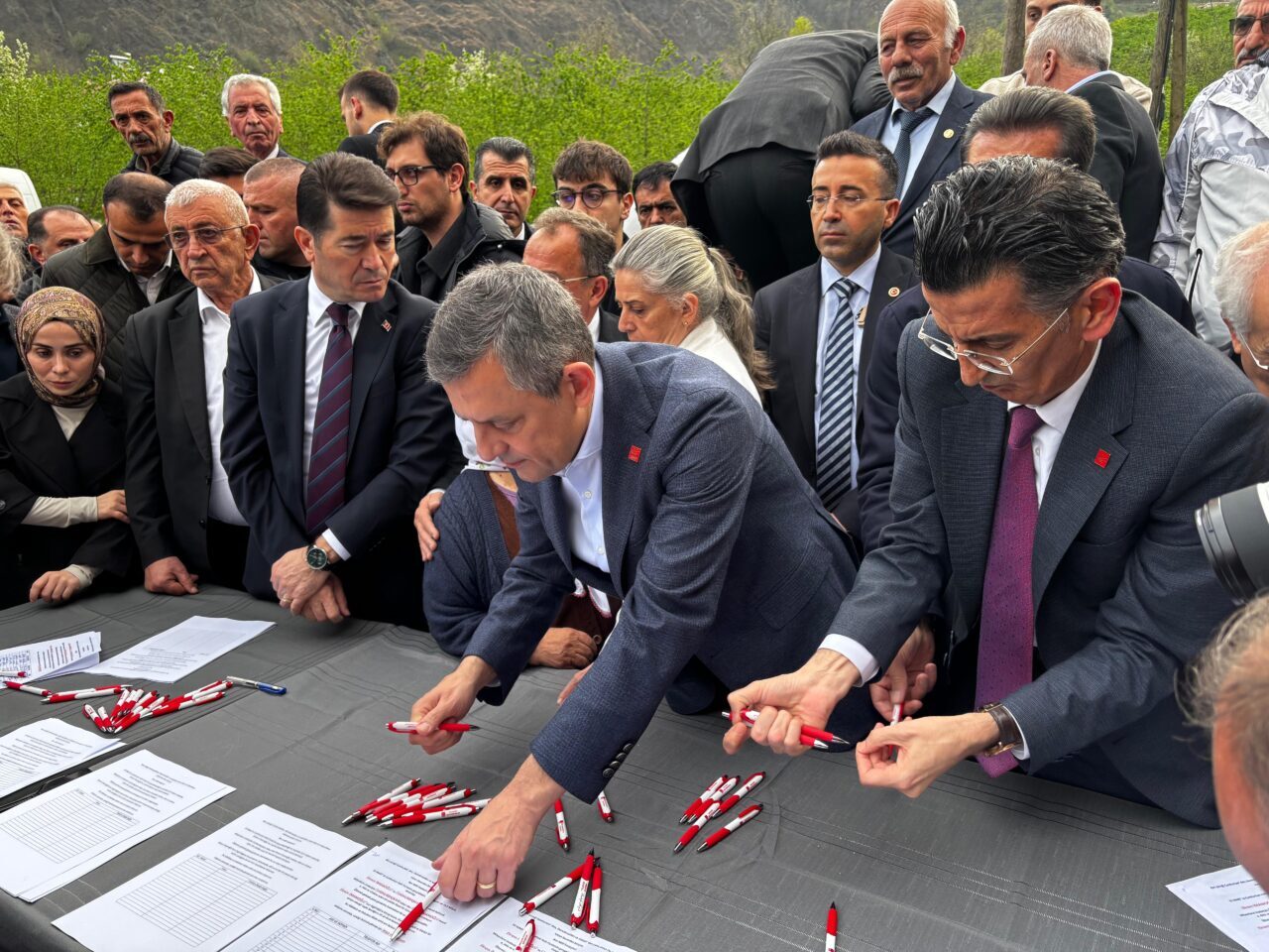 “Bu anlamlı, bu önemli imzayı burada ilk kez Rukiye anneden alacağız. Sonra kendi köylülerinden, Trabzonlulardan dalga dalga bütün Türkiye’ye bu imza kampanyası yayılacak. Ekrem Başkan’ın özgürlüğü için ve Türkiye’nin güzel yarınlara, aydınlık yarınlara, yoksulluğun ortadan kalkacağı, işsizliğin ortadan kalkacağı, herkesin yüzünün güleceği yarınlara kavuşması için adayımızı talep ettiğimiz ve önümüze sandığın gelmesini istediğimiz imza kampanyasını başlatıyoruz. Bütün Türkiye’de 2 milyona yaklaşan üyemiz var. Akın akın insanlar baba ocağına Gazi Mustafa Kemal Atatürk’ün kurduğu baba ocağına koşuyorlar, üye oluyorlar. 2 milyona yakın üyemizin elindeki bu imza formlarını Ekrem İmamoğlu’nu seven, ülkesini seven herkese ulaştıracağız. Her bir formda 25 imza var. Bu imza formlarıyla birlikte belki dünyanın en büyük en anlamlı imza kampanyasını başlatıp hızla tamamlamayı Türkiye’deki her iki seçmenden en az birine ulaşarak imzasını alarak İmamoğlu’na özgürlük talep etmeyi ve erken seçim talep etmeyi buradan başlatıyoruz.”