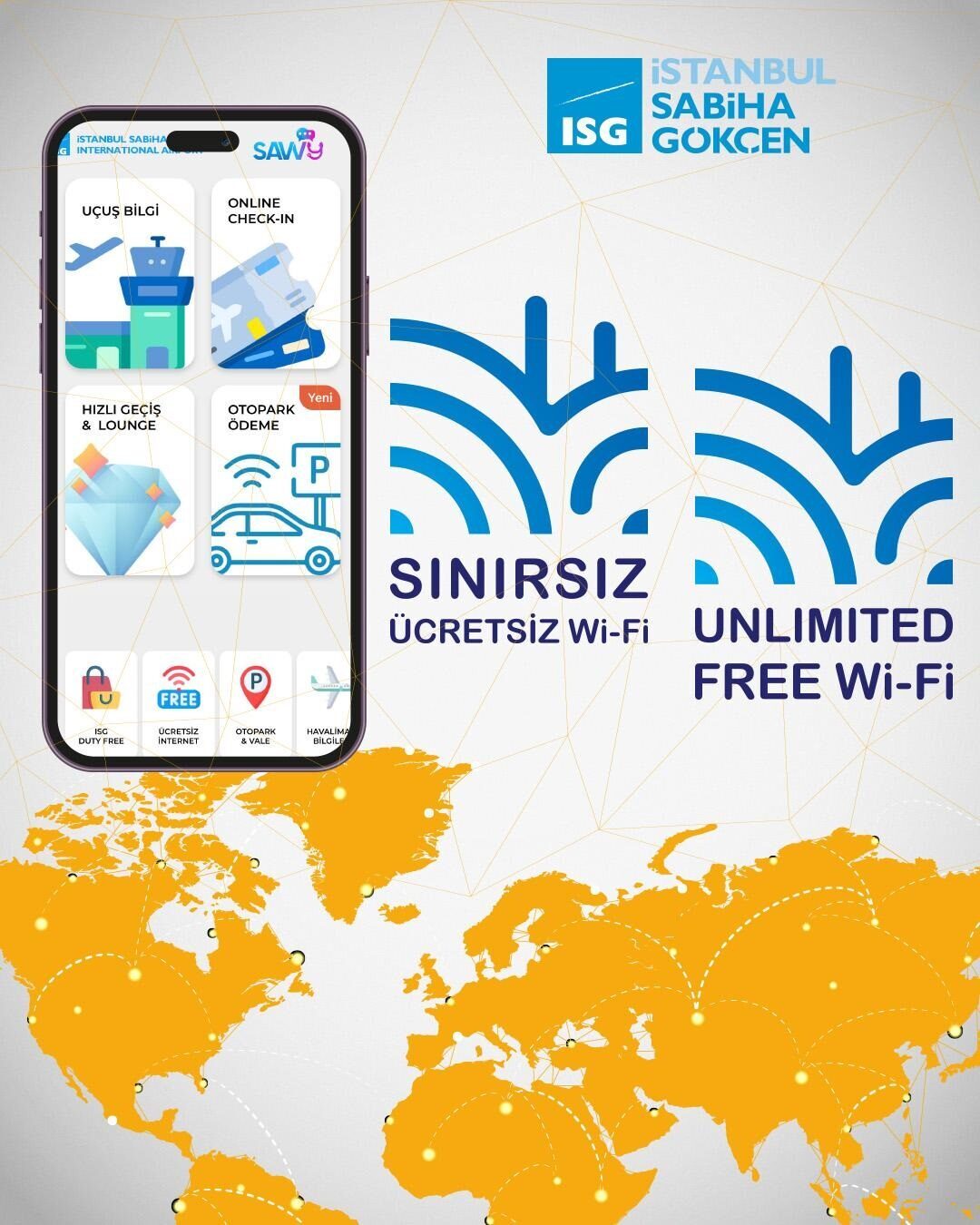 İbrahim YILDIZ/İSTANBUL, – İSTANBUL Sabiha Gökçen Havalimanı’nda (İSG) sınırsız ve ücretsiz internet erişimi yolcuların hizmetine sunulmaya başlandı.