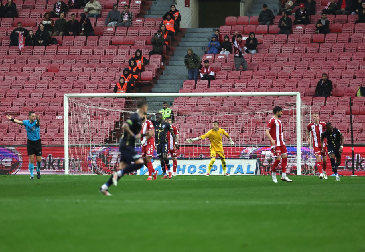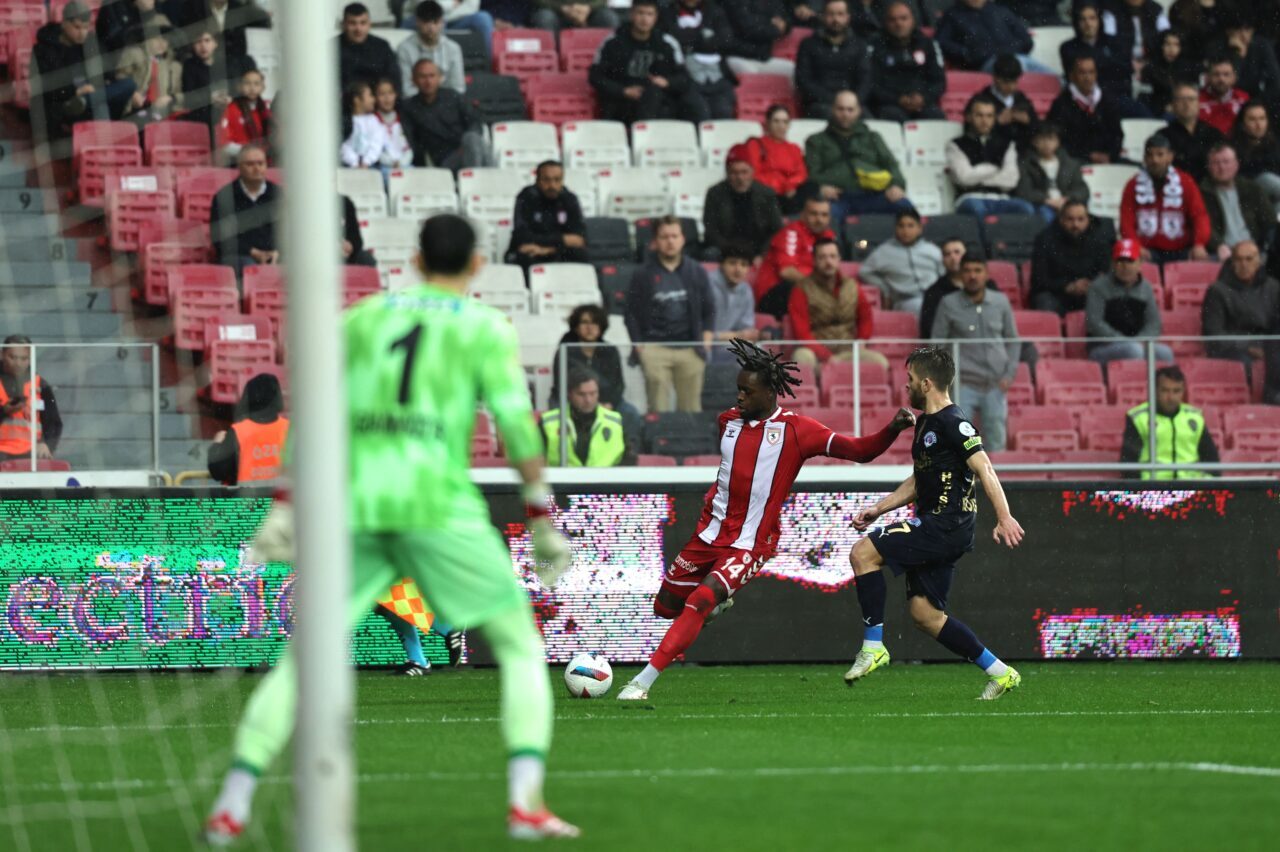 50’nci dakikada ani gelişen Samsunspor atağında Bennasser’in pasıyla buluşan Dimata, ceza sahası dışından kaleye çektiği şutu kaleci son anda engelleyerek topu kornere çıkarttı.
