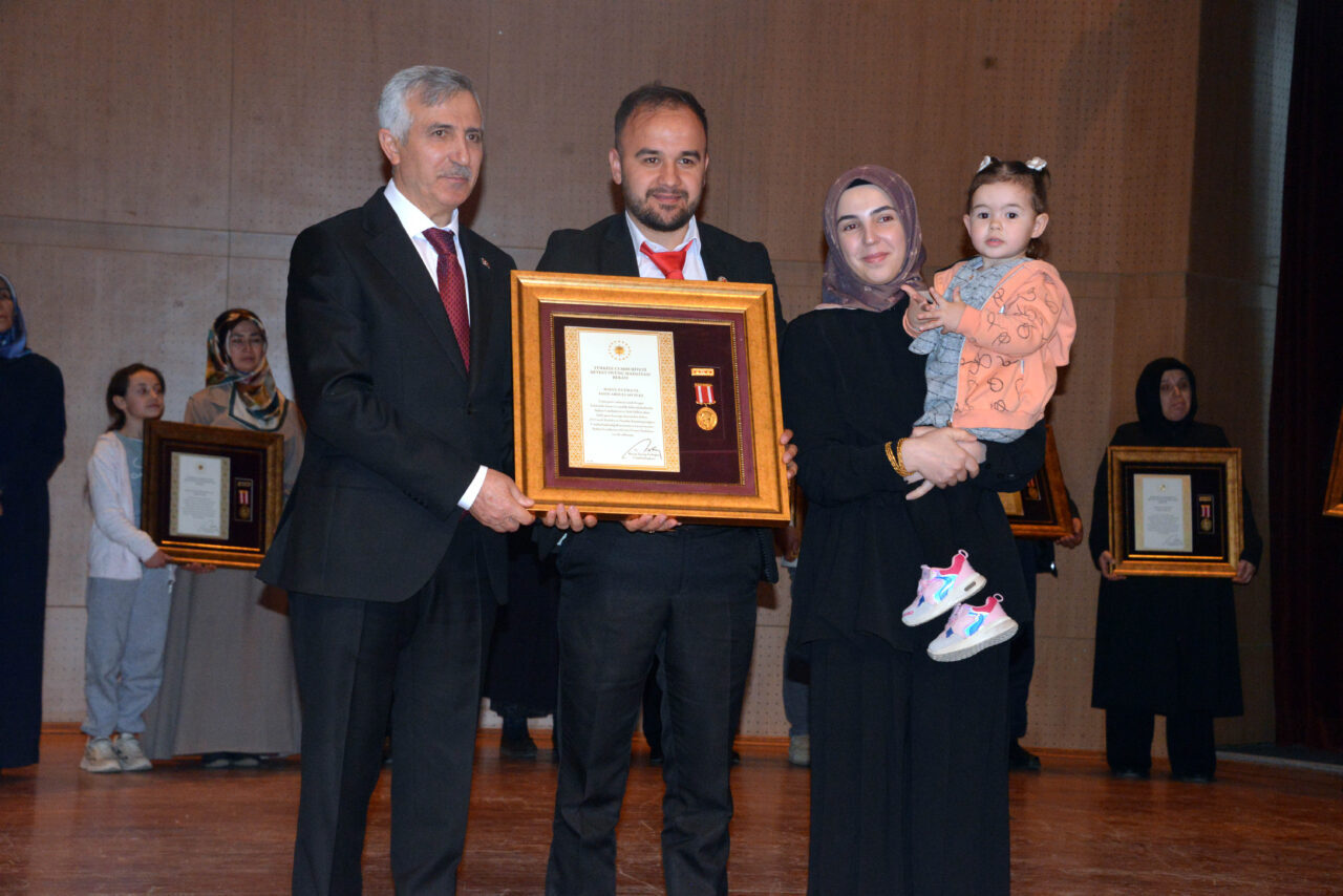Vatan savunmasında şehit olanların ailelerine ve gazilere Cumhurbaşkanı Recep Tayyip Erdoğan tarafından gönderilen devlet övünç madalyası ve beraatı, Kahramanmaraş’ta düzenlenen törenle verildi. 18 Mart Şehitleri Anma Günü ve Çanakkale Deniz Zaferi’nin yıl dönümünde 11 şehit yakını ve 7 gazinin madalya aldığı tören, saygı duruşu ve İstiklal Marşı’nın okunmasıyla başladı. Öğrencilerin şiirler okuyup Çanakkale türkülerinin seslendirdiği programda daha sonra Kahramanmaraş Valisi Mükerrem Ünlüer, şehit ailelerine ve gazilere devlet övünç madalyası ile beratlarını takdim etti. Duygusal anların yaşandığı törende bazı şehit yakınları Vali Ünlüer’in elinden madalyalarını alırken gözyaşlarına hakim olamadı.