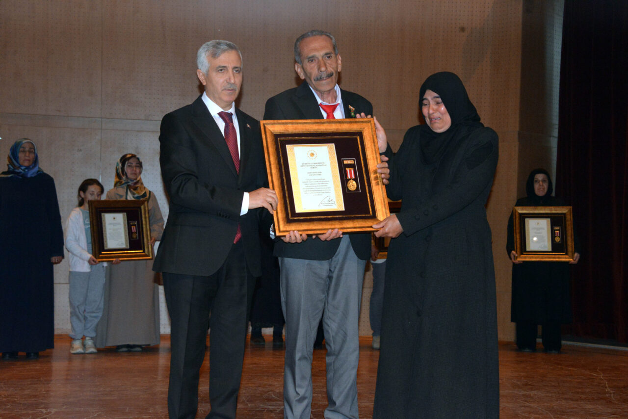Ömer KOÇ/KAHRAMANMARAŞ, – KAHRAMANMARAŞ’ta 32 yıl önce PKK’lı teröristler tarafından şehit edilen güvenlik korucusu Salman Uykun’un ailesine Cumhurbaşkanı Recep Tayyip Erdoğan tarafından devlet övünç madalyası ve beratı gönderildi. Madalyayı Vali Mükerrem Ünlüer’in elinden alan Durdu Mehmet Uykun, 32 yıldır şehit oğlu olmanın gururunu taşıdıklarını söyledi.