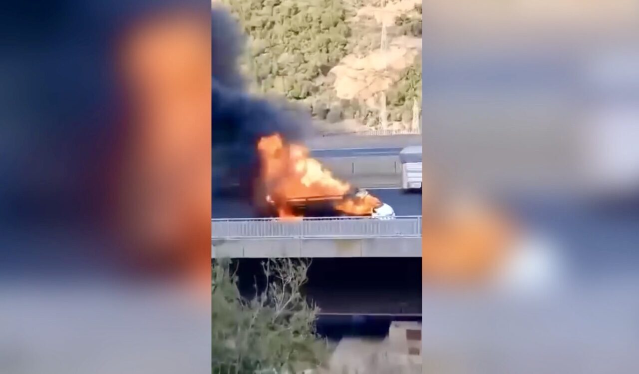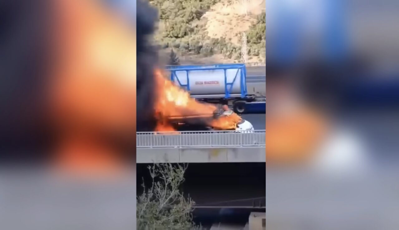 İbrahim EMÜL/ OSMANİYE, – OSMANİYE’nin Bahçe ilçesinde, seyir halindeyken alev alan kamyonet, yanarak kullanılmaz hale geldi. Kamyonetin alev alev yanması, cep telefonu kamerasıyla kaydedildi.