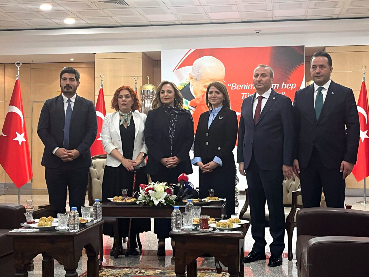 MHP Genel Merkezi’nde de bayramın 2’nci günü bayramlaşma programı gerçekleştirildi. Siyasi parti heyetlerini, MHP Genel Başkan Yardımcısı Zühal Topcu başkanlığındaki heyet karşıladı. MHP heyeti, bayramlaşma için gelen parti heyetlerine çikolata ve kolonya ikram etti. MHP; Demokratik Sol Parti, DEM Parti, AK Parti, Saadet Partisi, Demokrasi ve Atılım Partisi, Gelecek Partisi ve Büyük Birlik Partisi ile bayramlaştı. MHP heyeti ilk olarak Demokratik Sol Parti Genel Başkan Yardımcısı Ejder Onursal başkanlığındaki heyeti kabul etti. Ardından DEM Parti Sözcüsü ve Şırnak Milletvekili Ayşegül Doğan, Hakkari Milletvekili Onur Düşünmez ve Parti Meclisi Üyesi Zeyno Bayramoğlu’ndan oluşan DEM Parti heyetini kabul etti.