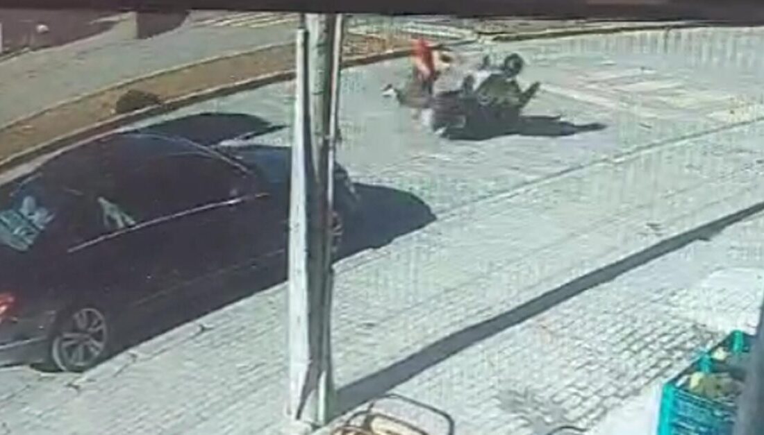 Şafak TAŞOYAR/MARMARAEREĞLİSİ,(Tekirdağ), – TEKİRDAĞ’ın Marmaraereğlisi ilçesinde, Yakup Kurnaz (27), kullandığı motosikletle yoldan geçmeye çalışan yaya Yeter Kaya’ya (46) çarptı. Motosikletin sürücüsü ile yayanın yaralandığı kaza, güvenlik kamerasına yansıdı.