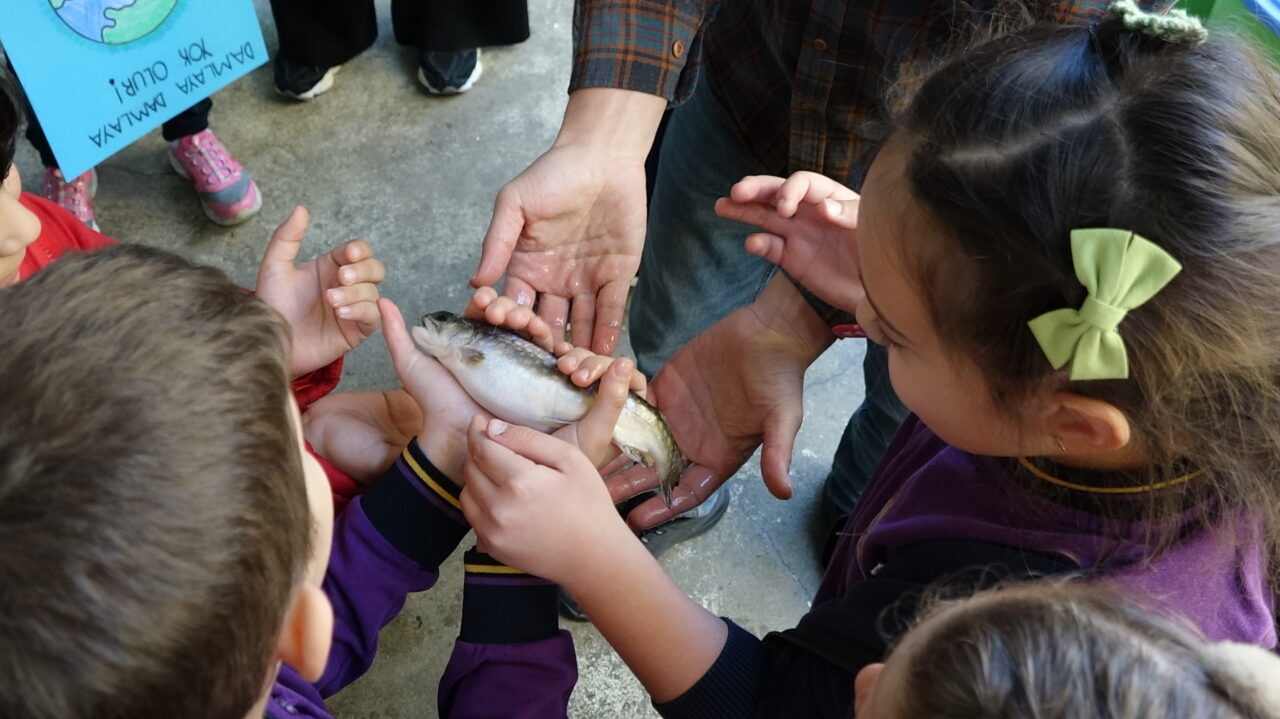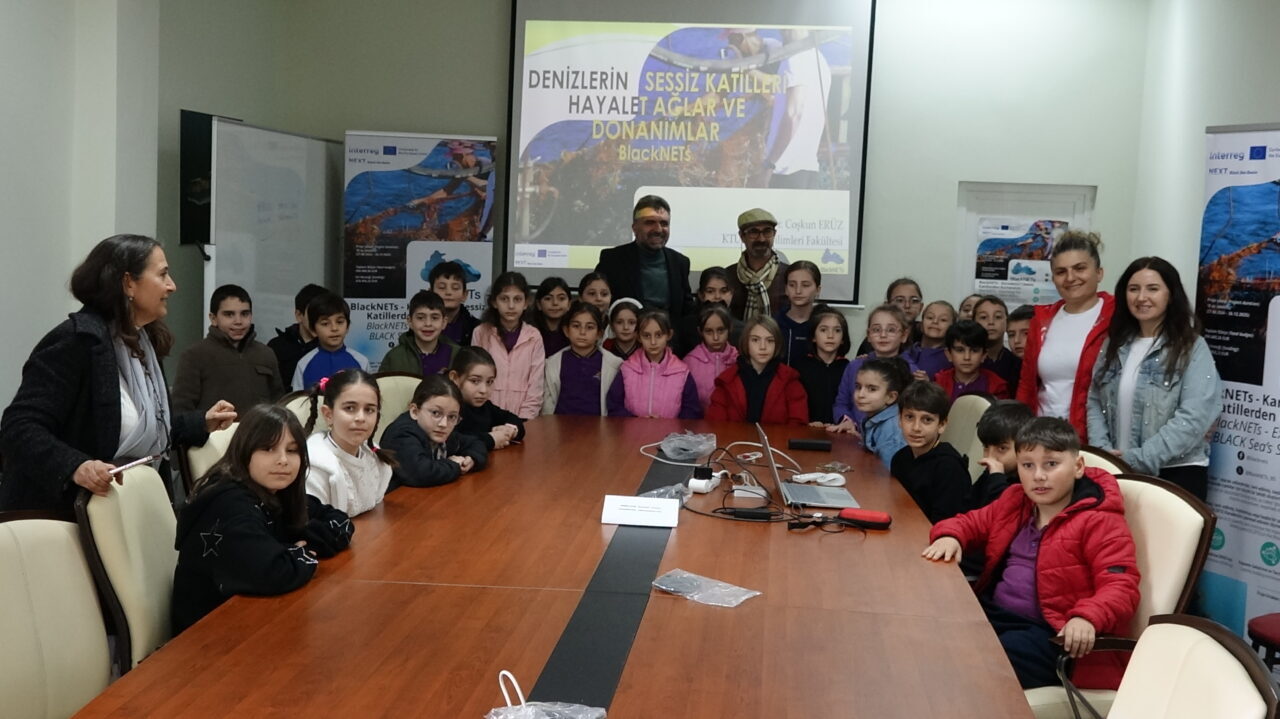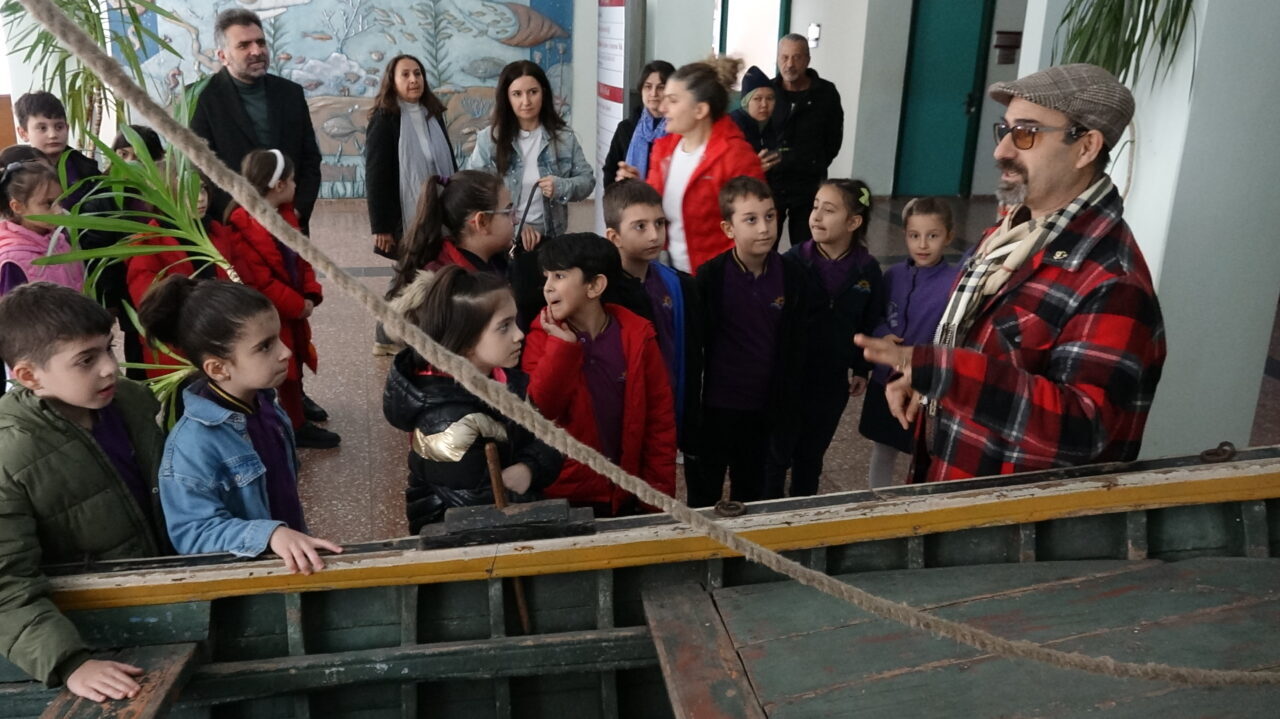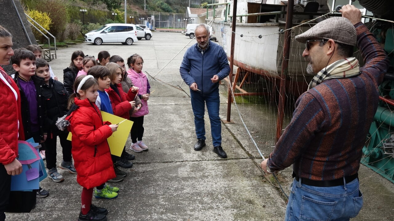 Selçuk BAŞAR-Efnan DEMİREREN/SÜRMENE (Trabzon), – TRABZON’da, Karadeniz Teknik Üniversitesi (KTÜ) Deniz Bilimleri Fakültesi akademisyenleri, ilkokul öğrencilerine yönelik deniz ekosistemi ve çevre bilinci eğitimi düzenledi. Akademisyenler, deniz ekosisteminin korunmasının önemine dikkat çekerken, eğitim kapsamında öğrencilere balıkçılıkta kullanılan ağlar tanıtıldı, ağ tamiri ve gemici düğümleri de öğretildi.