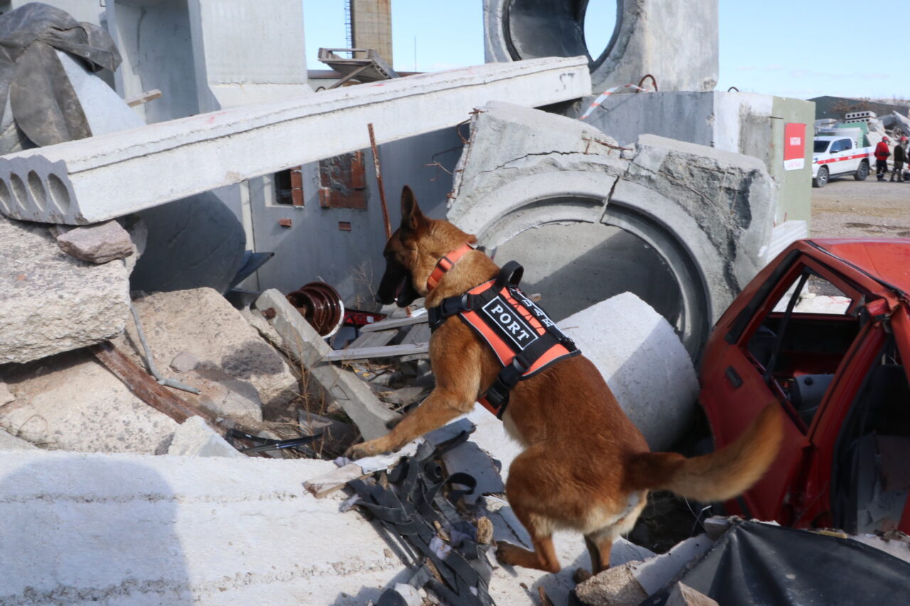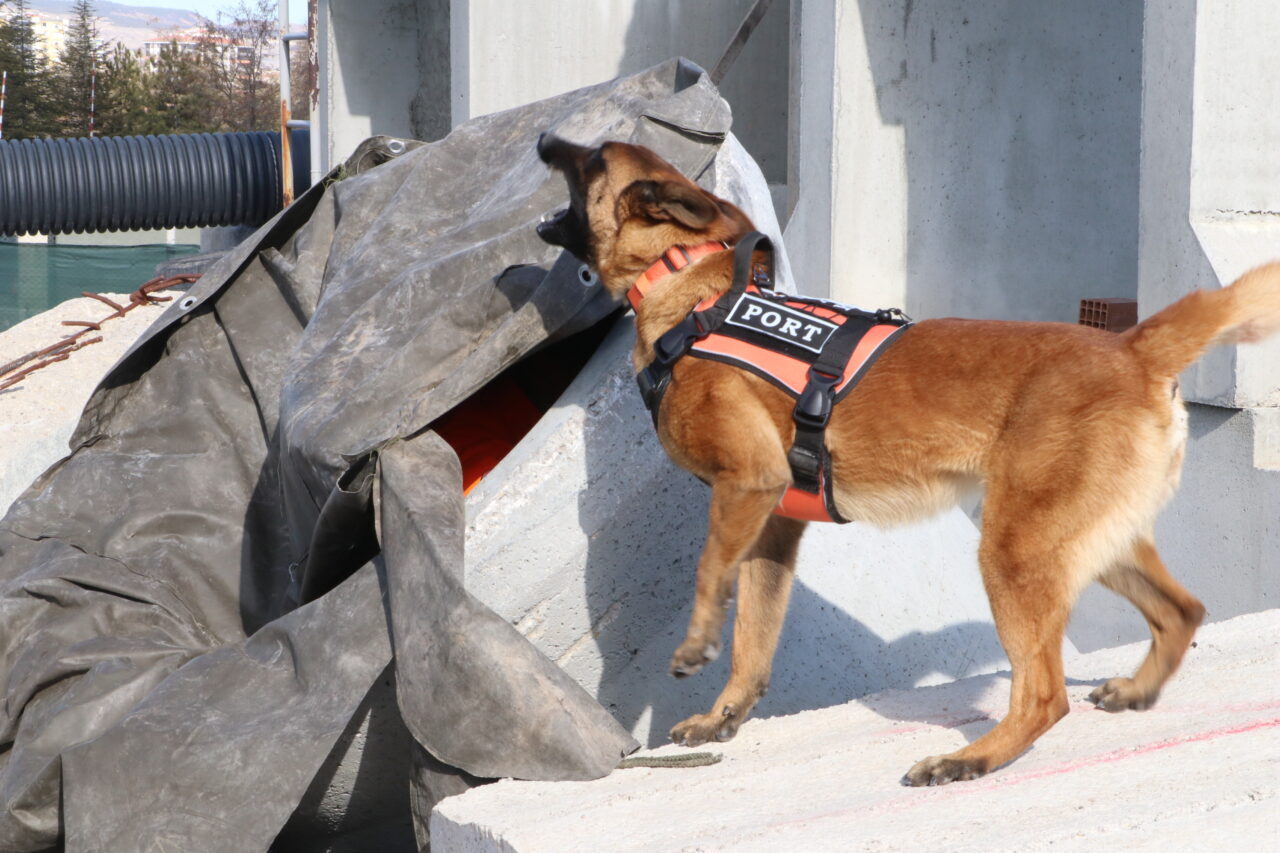 Veteriner Hekim Üsteğmen Ahmet Akpınar, arama ve kurtarma köpeklerinin, enkaz altında kalan canlı ve yaralı kişilerin yerini en kısa sürede tespit etmek üzere eğitildiğini söyledi. Akpınar, “Açık arazi veya ormanlık alanlarda kaybolan dost ve saklanan düşman unsurların, heyelan, çığ ve enkaz altında kalan şahısların yerini köpeklerimiz tespit ediyor. Alan aramasında 200 metre mesafeden, enkaz aramasında 10 metre, çığ aramasında ise 2 metre derinlikteki canlıları yüzde 95 doğrulukla tespit edebilme imkan ve kabiliyetine sahip köpeklerimiz. Ceset arama köpekleri afet durumlarında enkaz, moloz altında, muhtelif arazilerde, yüzey ve toprak altında bulunan kalıntının büyüklüğüne, çevre şartlarına ve pütüfikasyona yani çürüme, kokuşmaya bağlı olarak 15-60 santim derinlikteki, 180 santim yükseklikteki insan-ceset kalıntılarını yüzde 95 oranında tespit edebilme imkan ve kabiliyetine sahip” dedi.