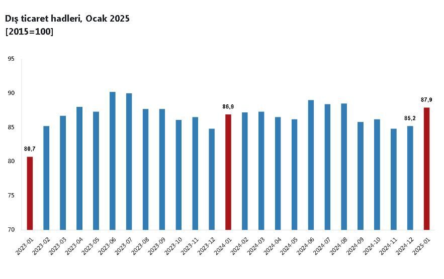 ANKARA, – TÜRKİYE İstatistik Kurumu (TÜİK), ocak ayında dış ticaret haddinin bir önceki yılın aynı ayına göre 1 puan artarak 87,9 değerini aldığını açıkladı.