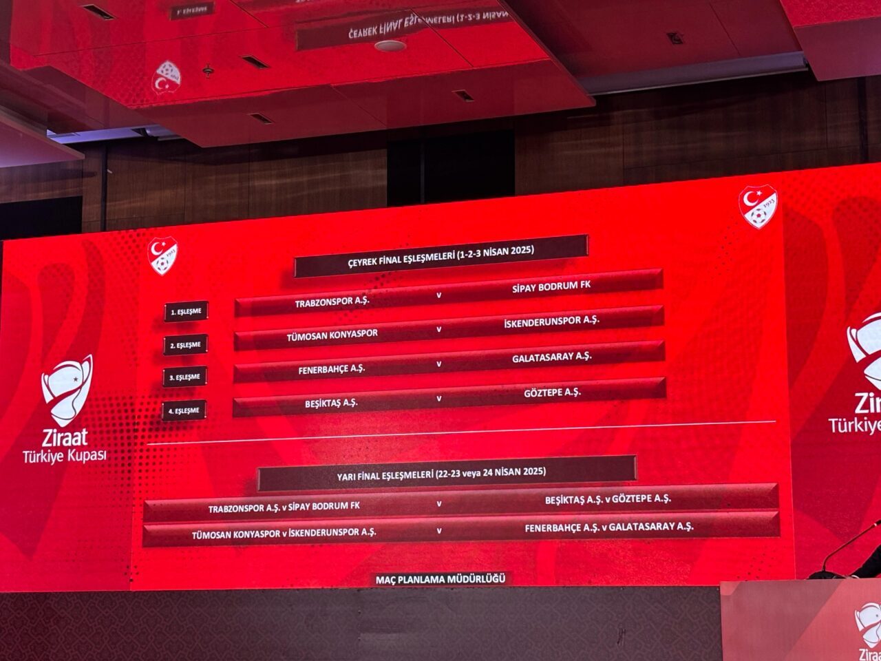 Efe ALDEMİR / İSTANBUL, – TÜRKİYE Kupası’nda çeyrek final ve olası yarı final eşleşmeleri belli oldu. Çeyrek final turunda Fenerbahçe ile Galatasaray eşleşti.