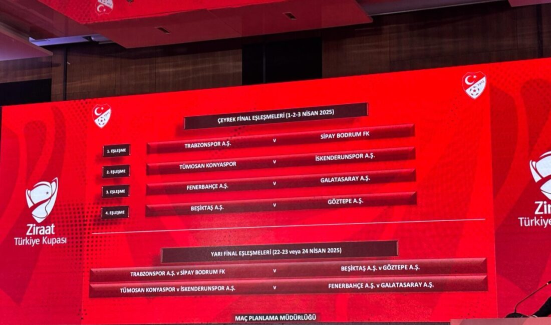 Efe ALDEMİR / İSTANBUL, – TÜRKİYE Kupası’nda çeyrek final ve olası yarı final eşleşmeleri belli oldu. Çeyrek final turunda Fenerbahçe ile Galatasaray eşleşti.