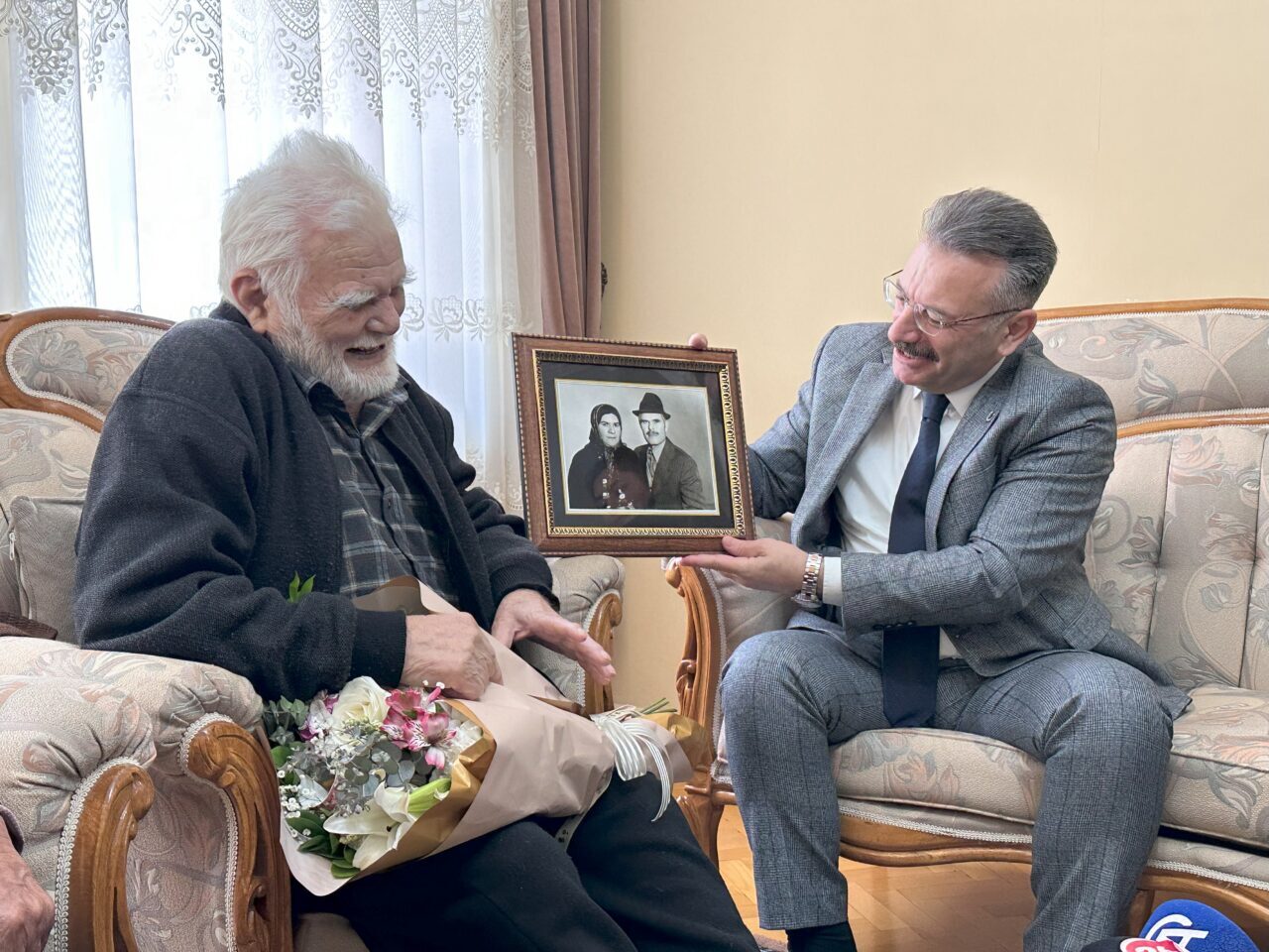 Batuhan KILIÇ/ESKİŞEHİR, – ESKİŞEHİR Valisi Hüseyin Aksoy, Cumhuriyet ile aynı yaşta olan Ali Sezer’i (102) evinde ziyaret etti. Eşiyle 71 yıldır evli olan 3 çocuk ve 6 torun sahibi olan Sezer, “Atatürk öldüğünde köye büyük bir resmini koydular, bir merasim yaptılar. Bütün köy toplandı, yas ilan etti, ben bunun canlı şahidiyim” dedi.