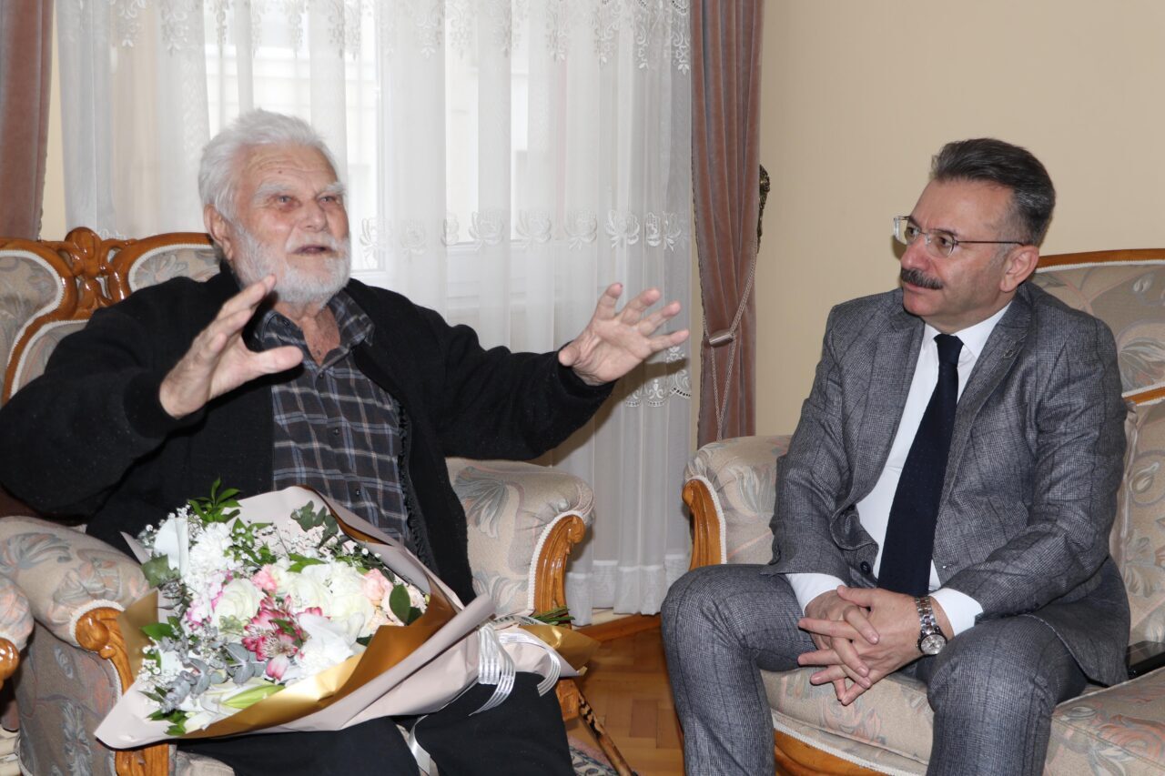 Vali Hüseyin Aksoy, eşi Hülya Aksoy ile birlikte kentteki en yaşlı kişilerden olan 23 Nisan 1923 doğumlu Ali Sezer ve eşi İsmihan Sezer’i (87) evlerinde ziyaret etti. ‘Yaşlılara Saygı Haftası’ kapsamındaki ziyarette Vali Aksoy, Sezer çiftine çiçek verdi. Cumhuriyet ile yaşıt olan Ali Sezer’in anılarını dinleyen Vali Aksoy, “Amcamız, Cumhuriyet ile yaşıt, 1923 doğumlu. Eşi de 1937 doğumlu. Aileye olan saygımızı ve hürmetlerimizi sunmak için buradayız. 2025 yılı da bildiğiniz üzere ‘Aile Yılı’. Uzun yıllardır evliliğini sürdürmüş, 3 çocuk, 6 torun sahibi olarak bu yaşa gelmiş, sağlıklı bir şekilde ömür geçiren bu ailemizi de Türkiye’ye örnek olabilecek bir durum olarak ifade etmek de mümkün” diye konuştu.