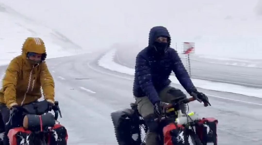 Behçet DALMAZ/ VAN, – VAN’a 90 kilometre uzaklıktaki 2 bin 750 rakımlı Güzeldere Geçidi’nde dün aniden bastıran tipiye yakalanan Fransız çift Quentin Oustelandt (31) ve Zoë Lepilleur (28), tünele sığınarak hayata tutundu. Bisikletleriyle dünya turuna çıkan ve şu ana kadar 5 ülke gezip, Türkiye’de de 14 kenti gezerek 8 bin kilometre yol kat eden çift, yoldan geçen sürücülerin yardımıyla kurtarıldı.