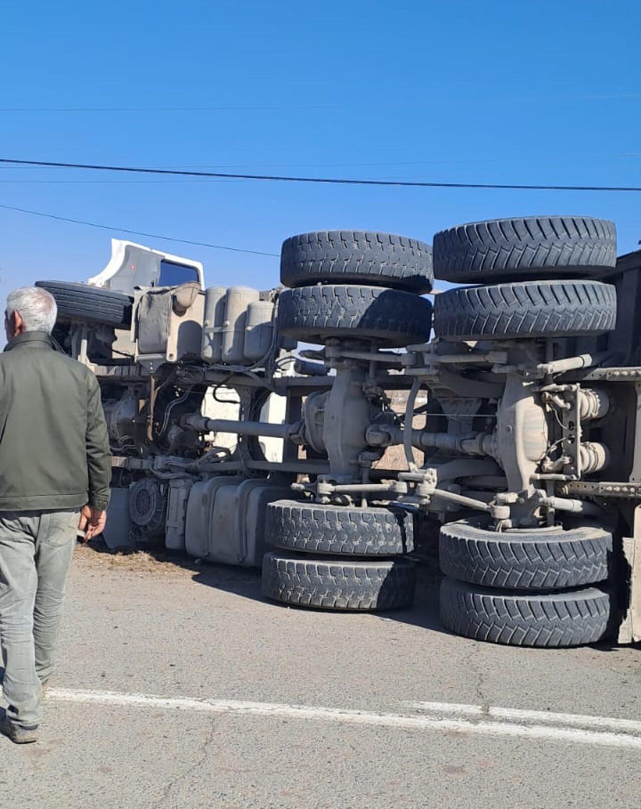 Olay, Iğdır’ın Karakoyunlu ilçesi Gökceli-Bayat köyü kavşağında meydana geldi. Ekrem Akkuş idaresindeki Iğdır İl Özel İdaresi’ne ait 76 DK 781 plakalı kum yüklü kamyon, virajı alamayınca yan yattı. İhbar üzerine olay yerine polis, jandarma, sağlık ve itfaiye ekipleri sevk edildi. Yan yatan aracının içinde yaralanan sürücüye, sağlık ekipleri kırılan camdan ulaşarak müdahale etti. Araçta yapılan ilk müdahalenin ardından sürücü, camdan çıkarılıp Iğdır Devlet Hastanesi’ne kaldırıldı.