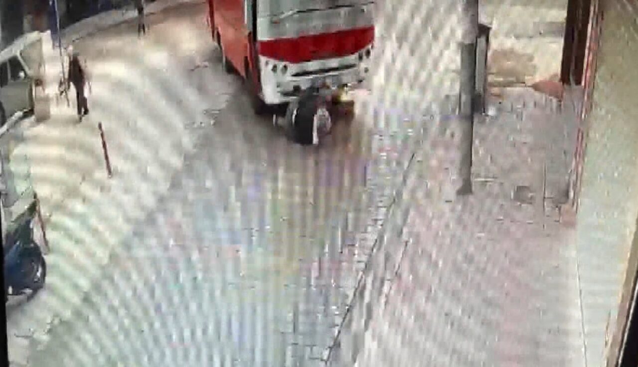 İbrahim EMÜL/OSMANİYE, – OSMANİYE’de yolun karşısına geçerken kavşaktan dönüş yapan özel halk otobüsünün altında kalan Sevgi C., yaralandı. Kaza, bir iş yerinin güvenlik kamerasına yansıdı.