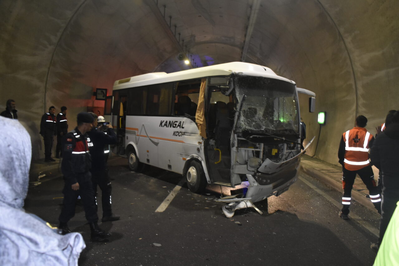 Eraydın AYTEKİN-Hüsnü Ümit AVCI/SİVAS, – SİVAS’ın Ulaş ilçesinde Yağdonduran Tüneli’nde yolcu midibüsü TIR’a arkadan çarptı, 14 kişi yaralandı. Kaza nedeniyle tünel ulaşıma kapandı.
