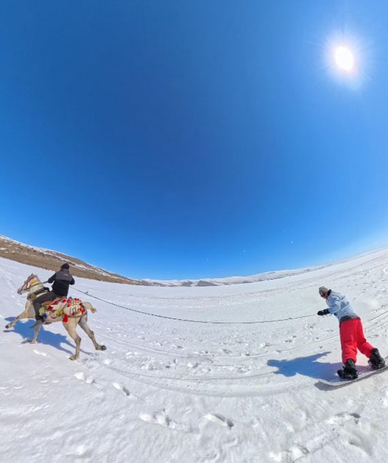 Kars-Ardahan sınırında yer alan 123 kilometrekare alana sahip Çıldır Gölü’nün buz tutan yüzeyi çeşitli aktivitelere sahne oluyor. Atlı kızak turundan Eskimo usulü balık avına, hız pateninden, buz patenine kadar etkinlikler yapılan Çıldır Gölü’nde son olarak iki arkadaş dörtnala koşan atlara bağladıkları iplerle snowboard yaptı. Kayak sporcuları Kaan Korucu ve Talha Örs, Çıldır Gölü’ndeki gösterilerine önce atlı kızakların çektiği iplerle snowboard yaparak başladı. Hız ve cesaretin birleşimi olan gösteride sporcular yeteneklerini sergilerken, izleyiciler keyifli anlar yaşadı.